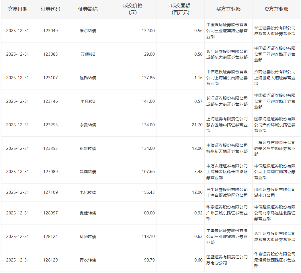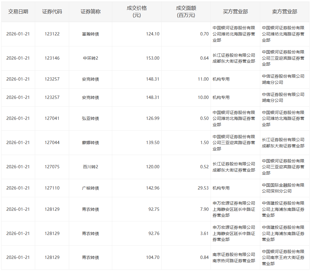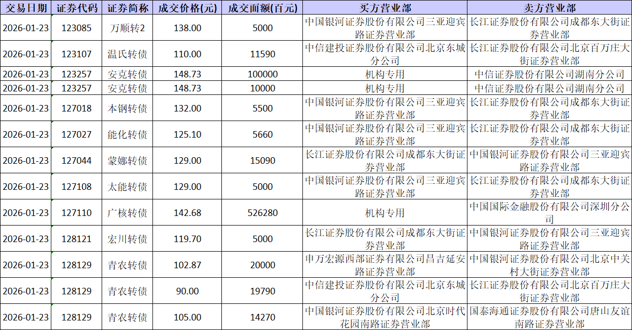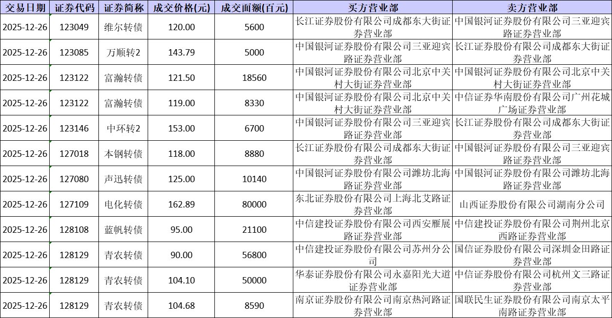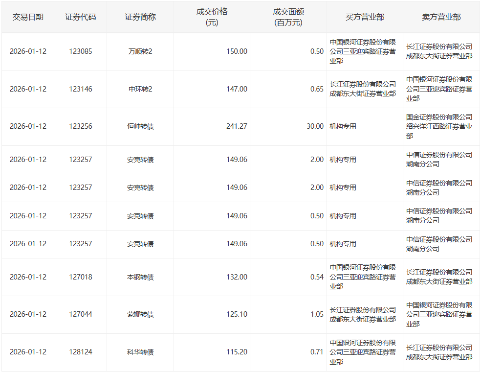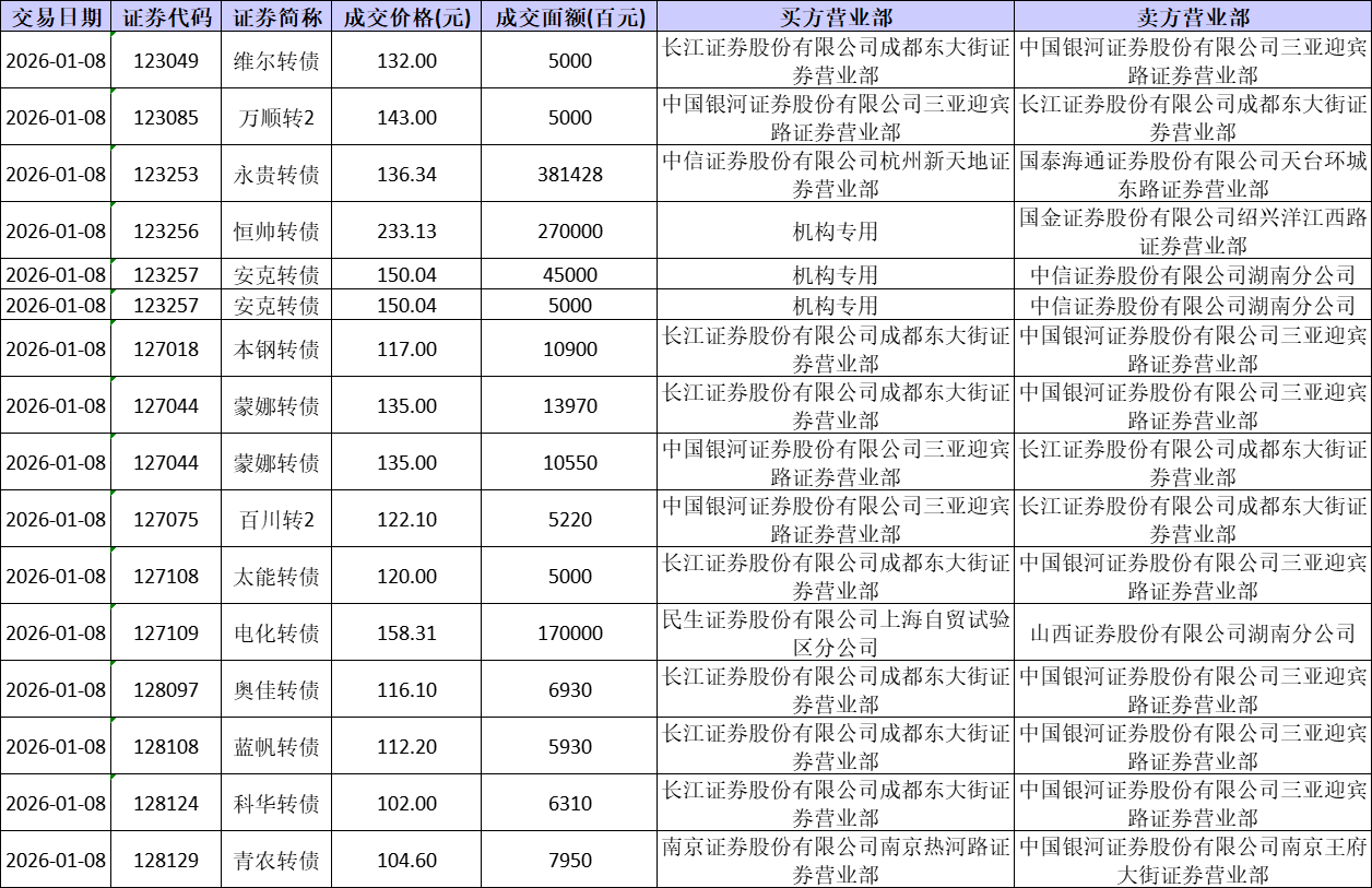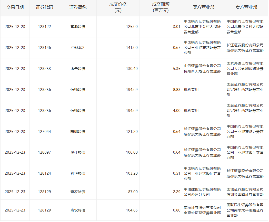 川恒转债,成交价格121.10元,25万张,成交金额3,027.50万元。
