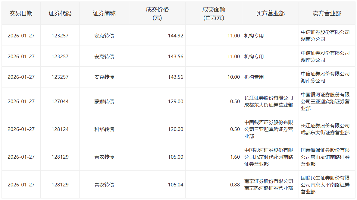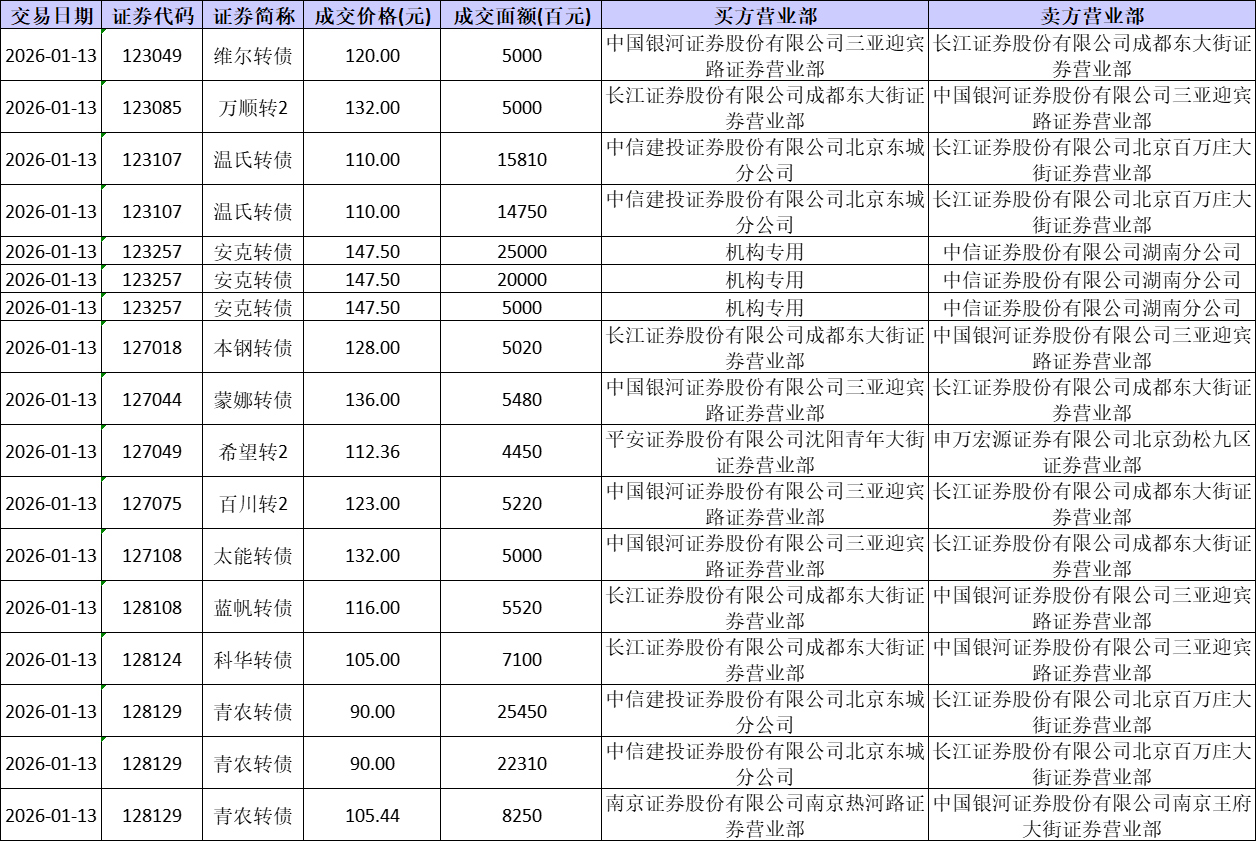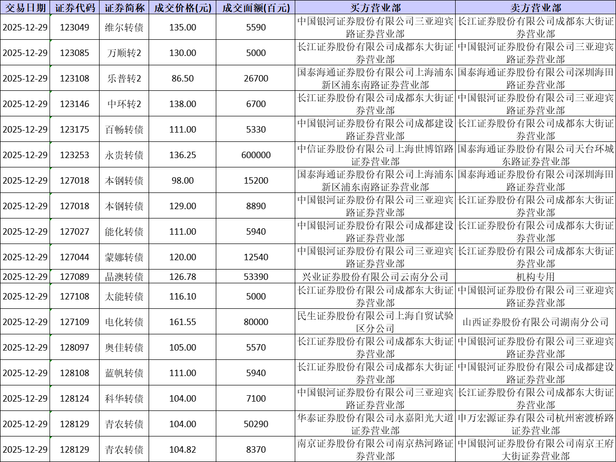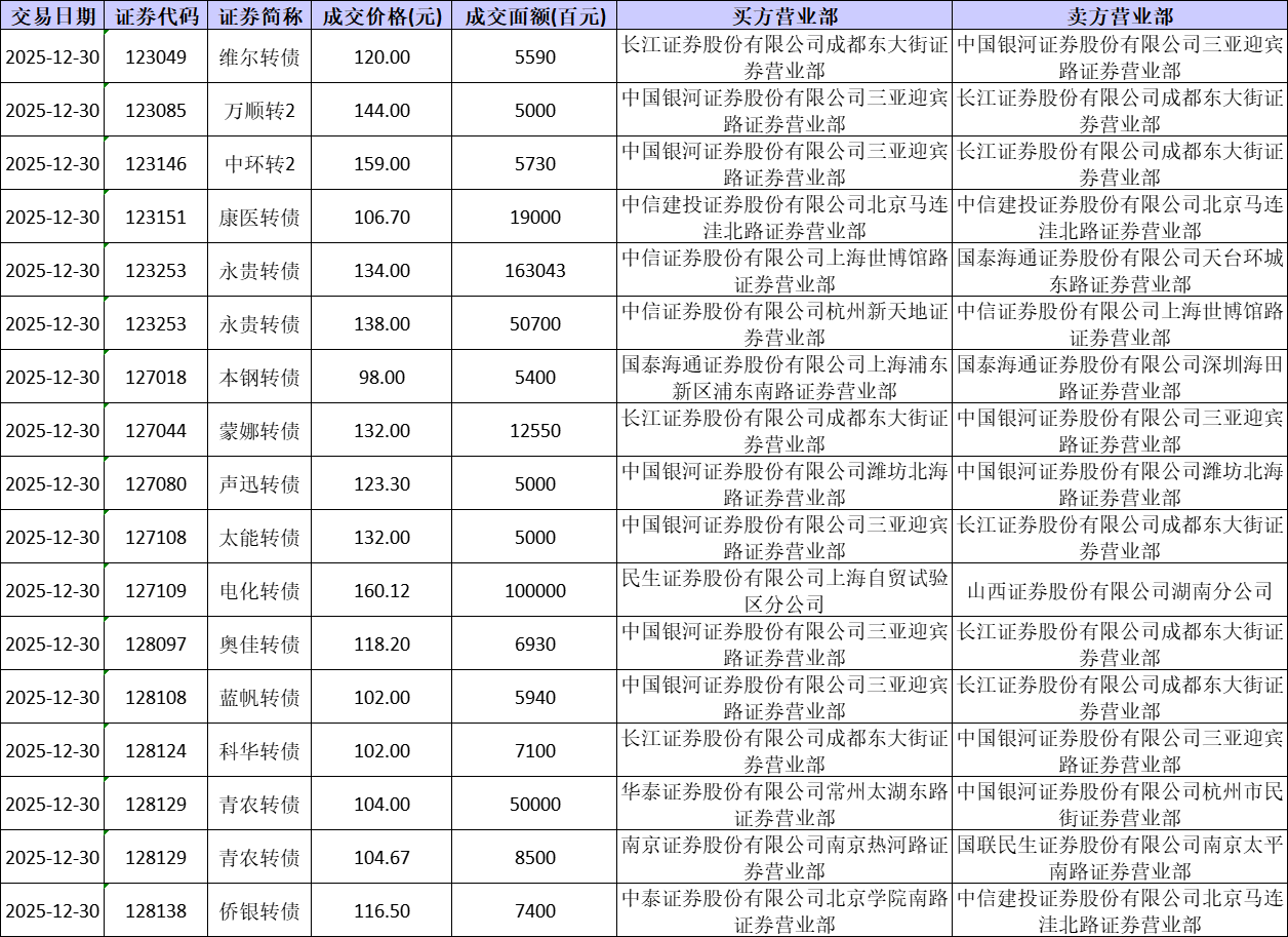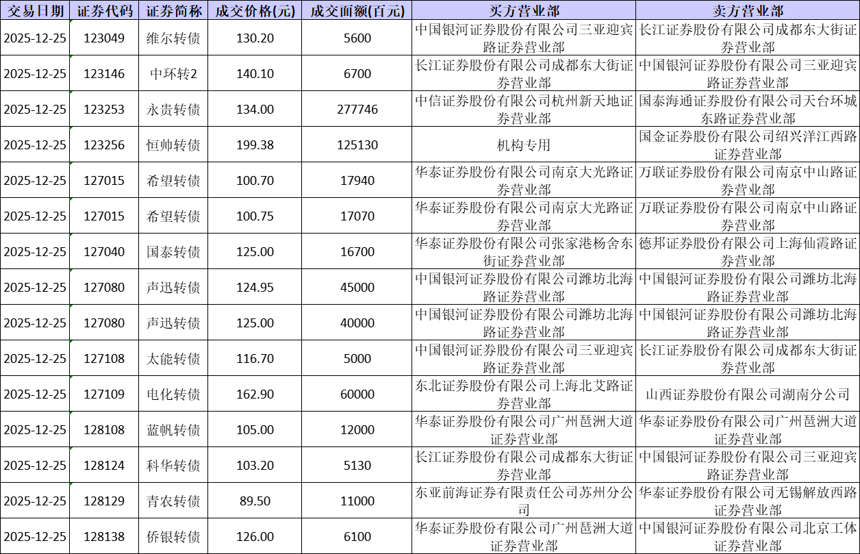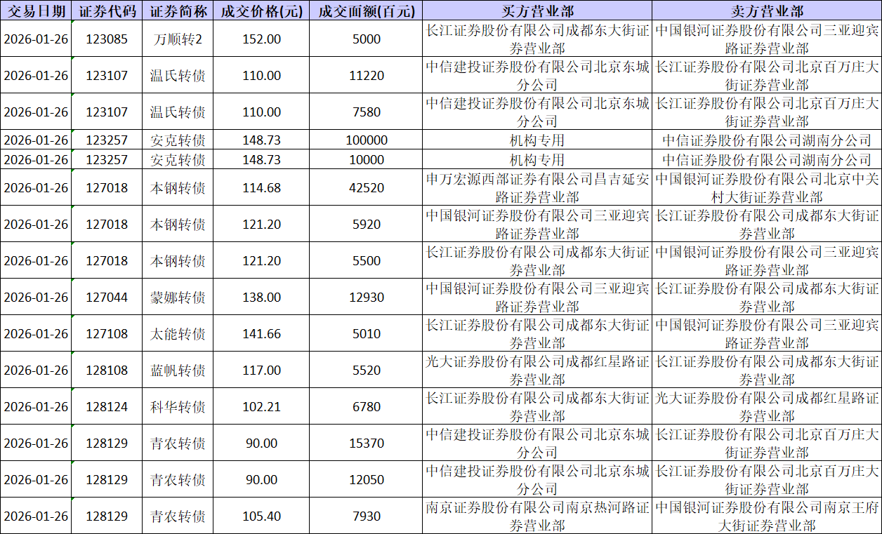 川恒转债,成交价格121.10元,25万张,成交金额3,027.50万元。