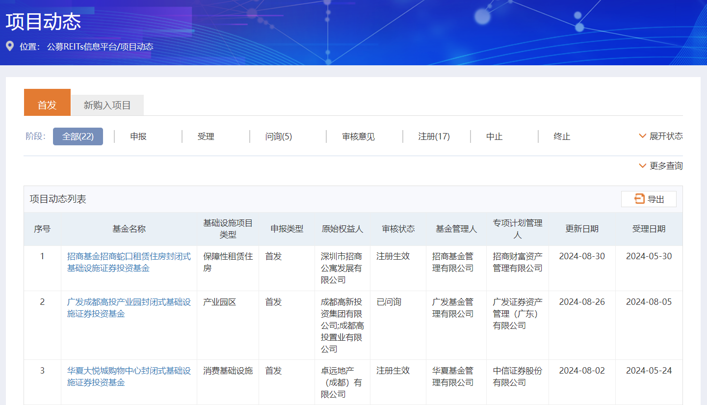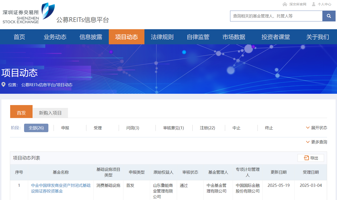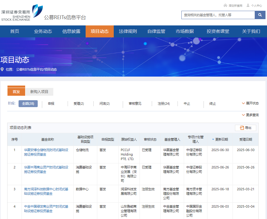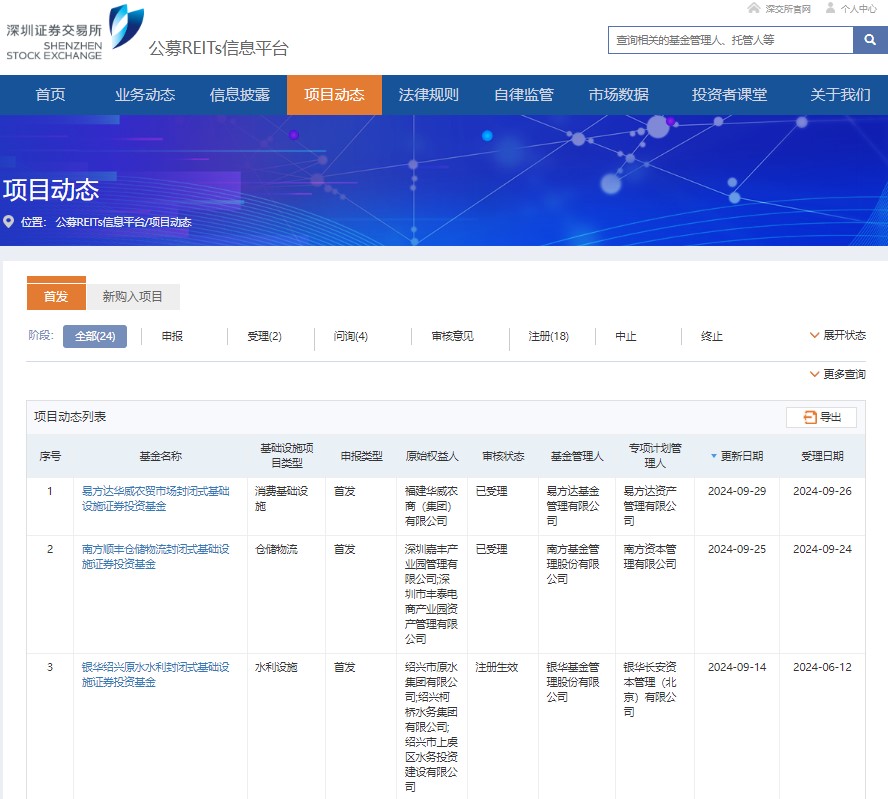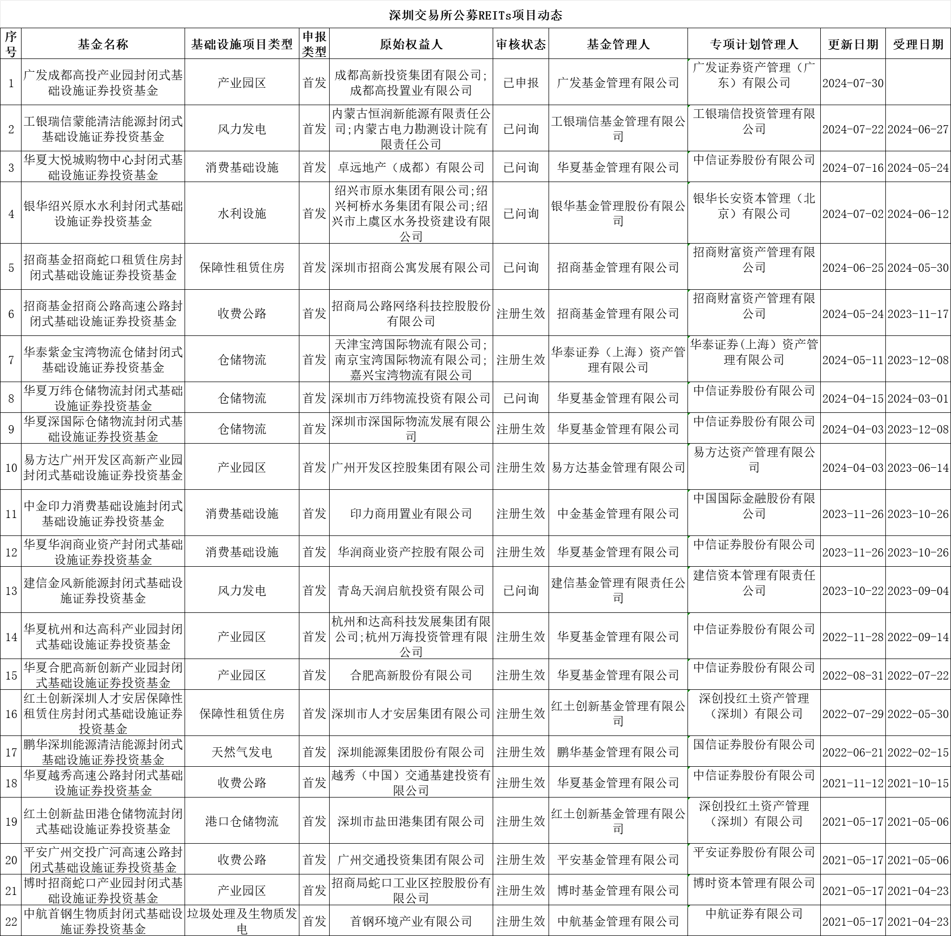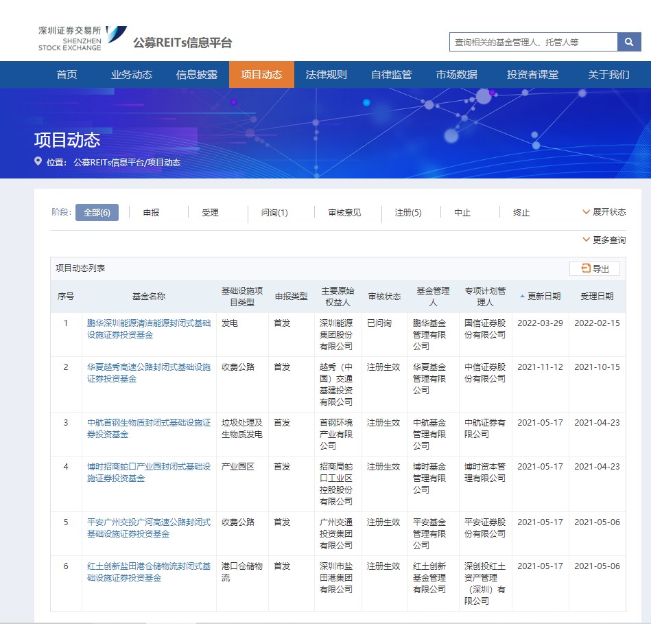 深圳证券交易所有6个公募REITs:5个已上市交易、1个已问询。
