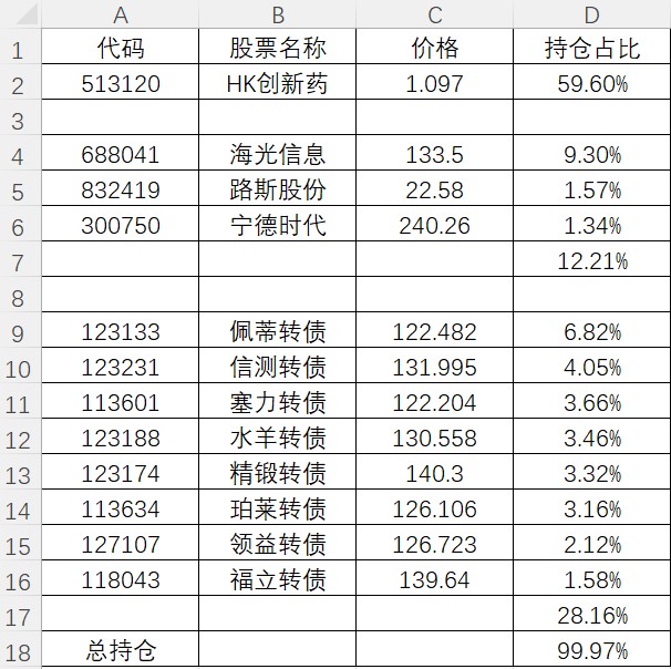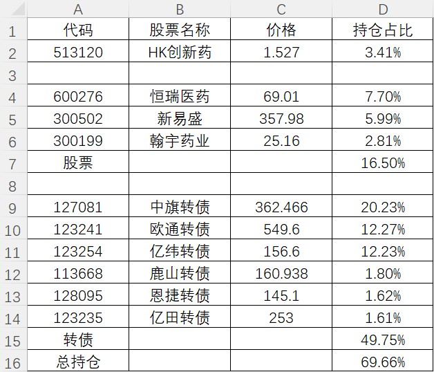 上周第四仓位新易盛,第五仓位恒瑞医药也都在周中抓住机会清仓。