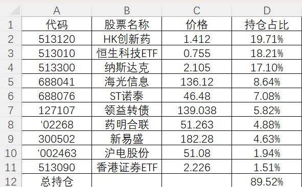 本周-1.14%,159659换了513300,股票调仓急躁,往往高买低卖。目前的持仓结构还放心点,短期算稳住了。一步一步走着看吧。