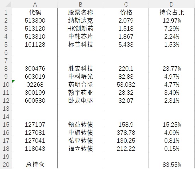 胜宏科技继续带来超额收益,持仓越来越少了。