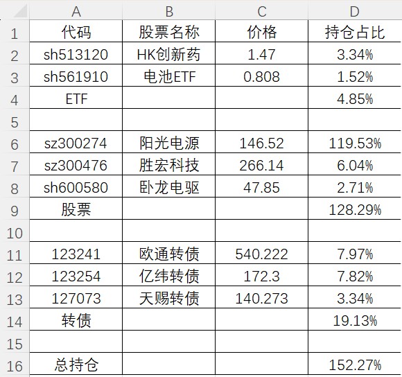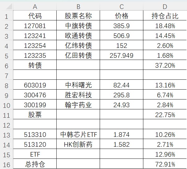 留了一个华钰转债,周五142.873清仓。