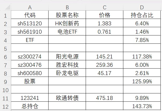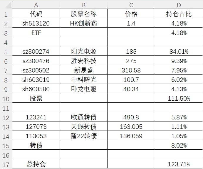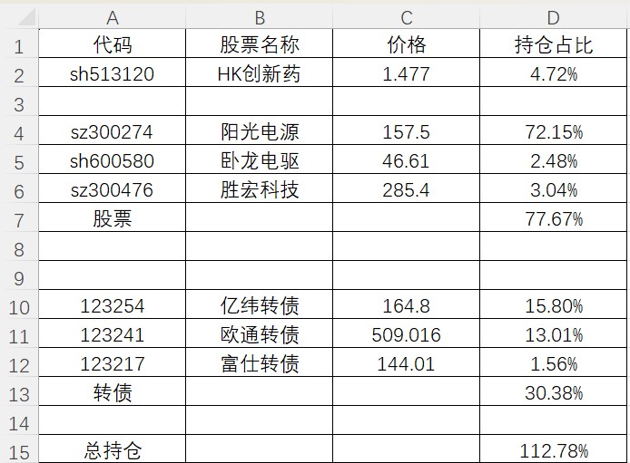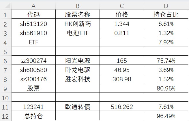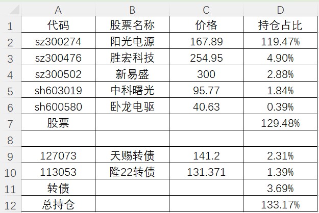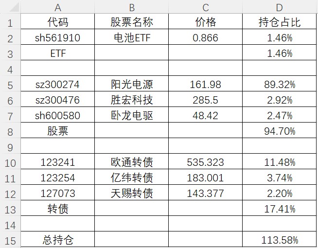 建仓阳光电源,加仓卧龙电驱再被套。