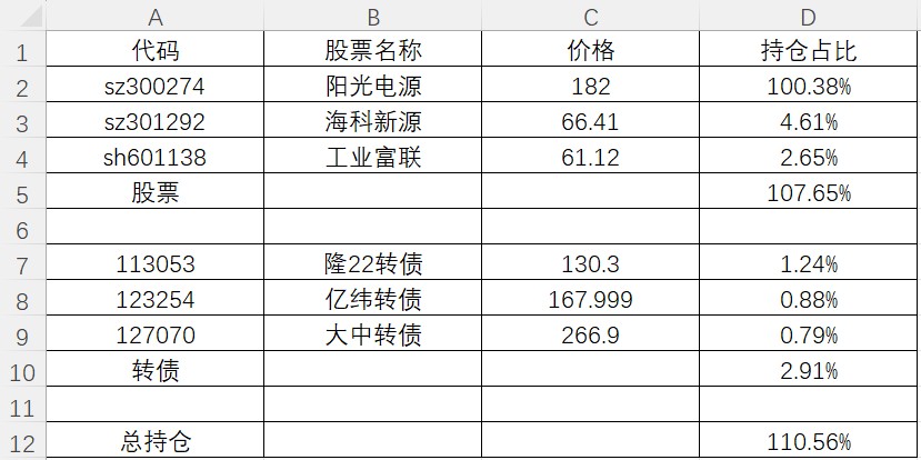 建仓工业富联,亿纬转债,亿纬暂时被套。