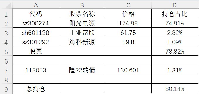 建仓阳光电源,加仓卧龙电驱再被套。