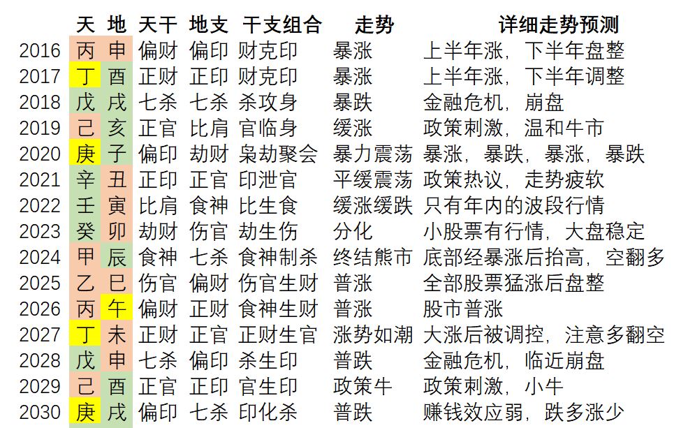 从过往几年看,时间上可能会略有偏差,但总体走势至少应该算是“虽不中,亦不远矣”。一个甲子的表格太长了,我下面就贴了2016-2030年和推演的逻辑,有兴趣的自己可以去找书来看看。