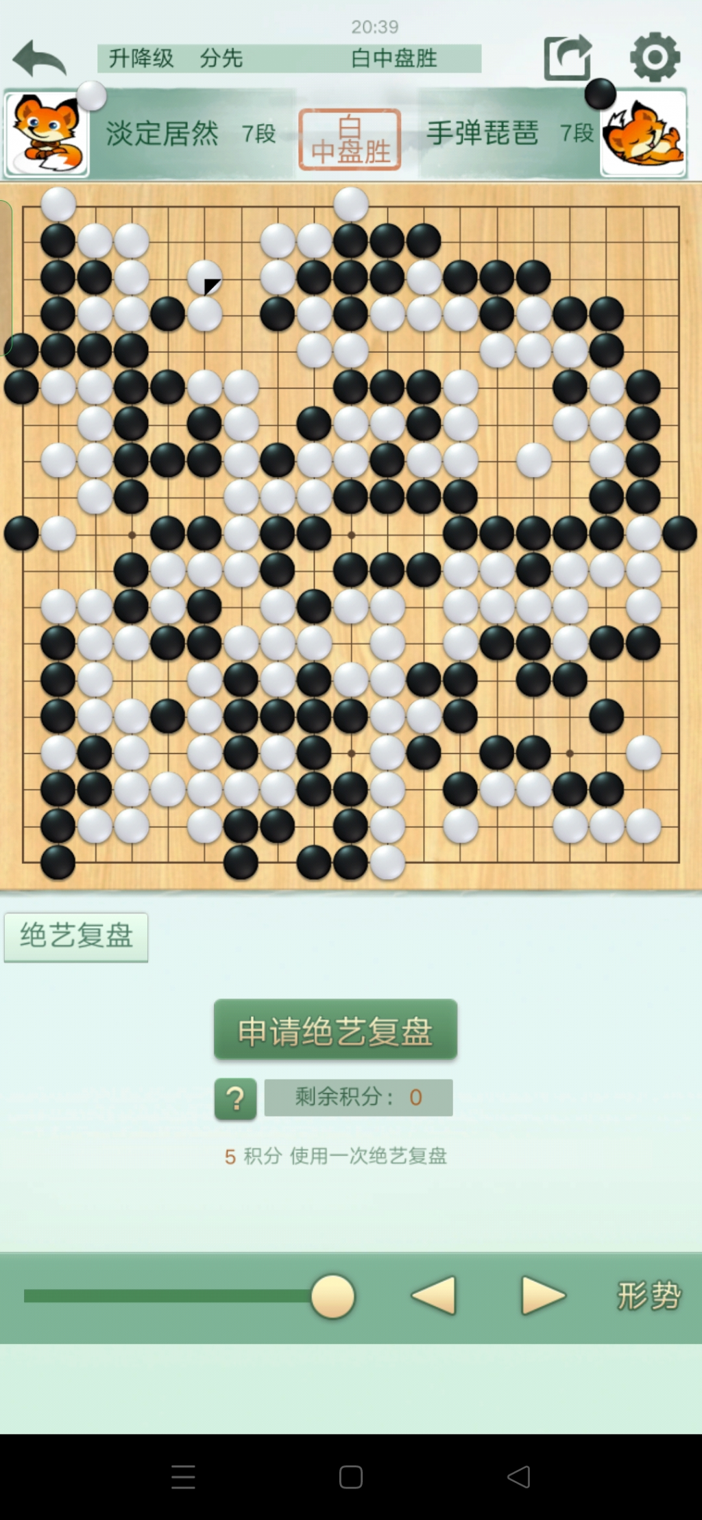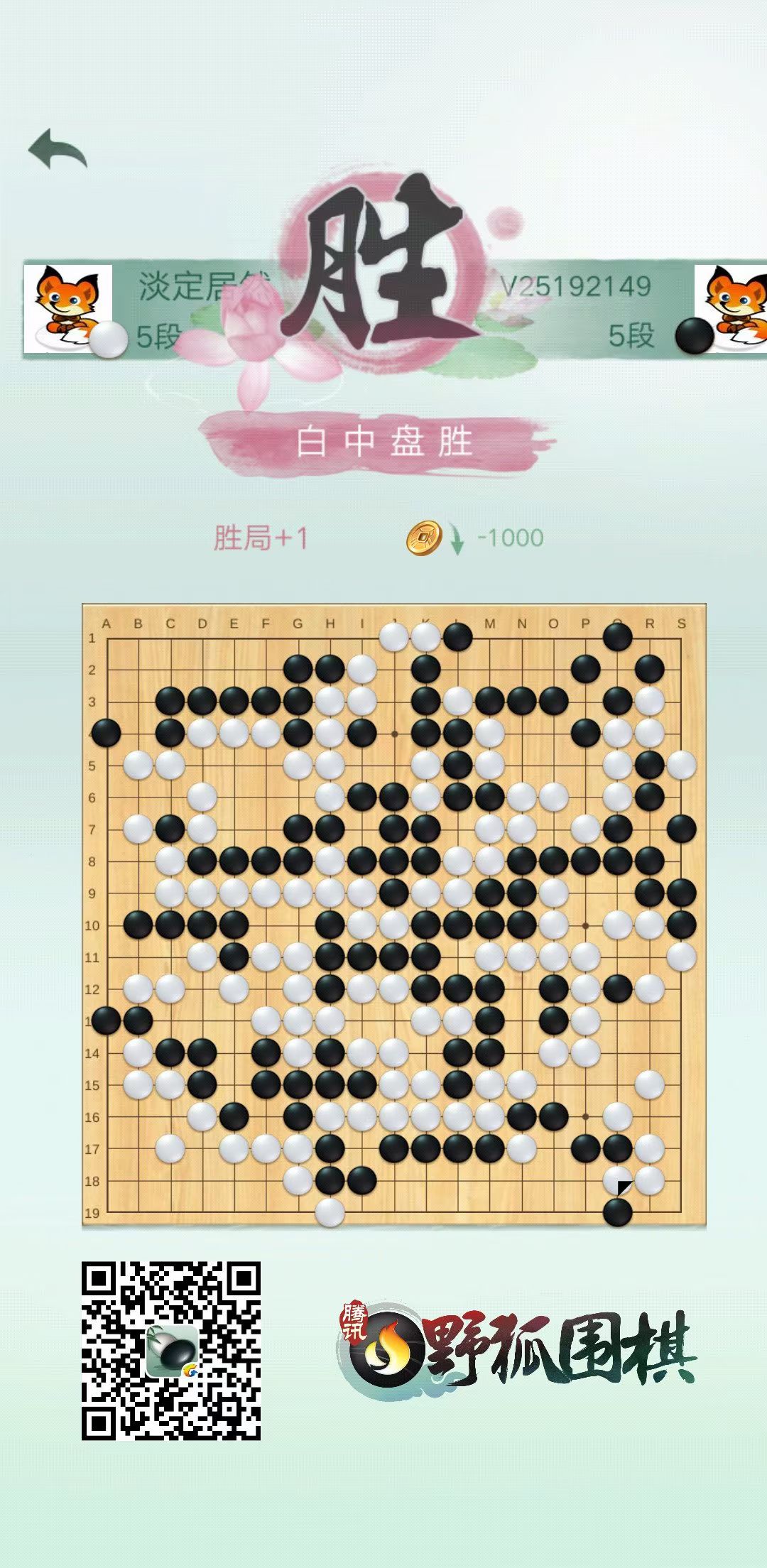 刚刚又赢一盘,今天下得有点保守!得自我调整一下!