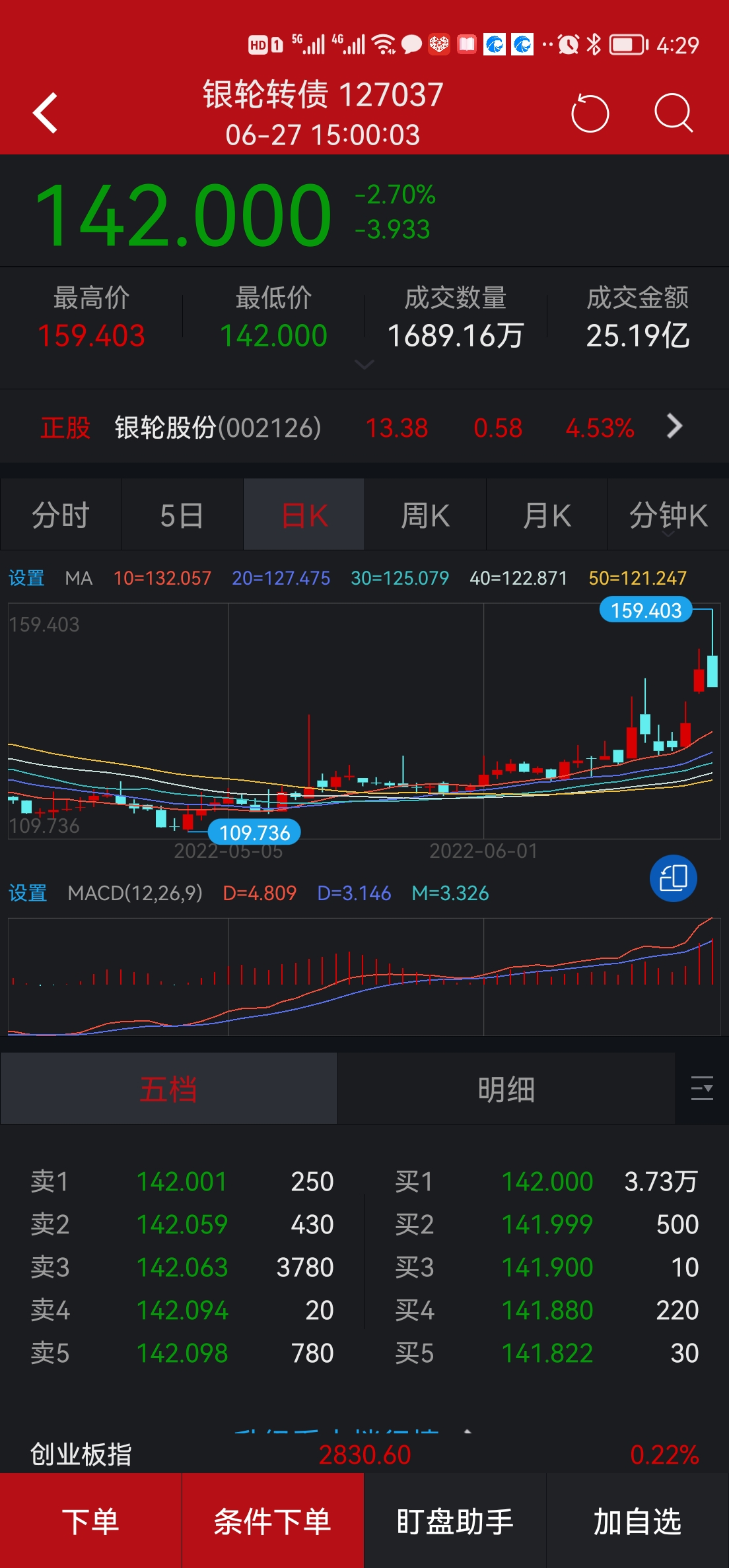 115加岩土 50张,142.33 回银轮 50张,110.66 回华正30张,149.54 出赛伍80张
