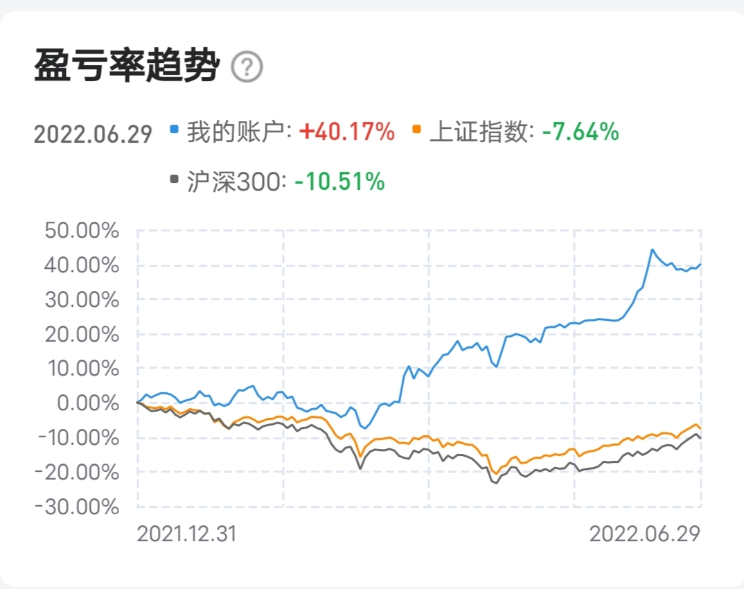 回顾上半年还是有不少吐槽点。首先是错过煤炭股的行情,持仓信心不足,13元成本的陕西煤业早早就被甩下车。其次是现金比例偏高。另外就是网格操作虽然安全,但后果是大比例资产坐过山车,这个问题怎么缓解还要再想想。盈亏同源,上半年最低点亏损不足1%,收益最高时不到3%