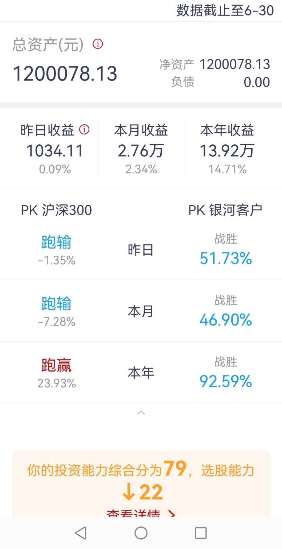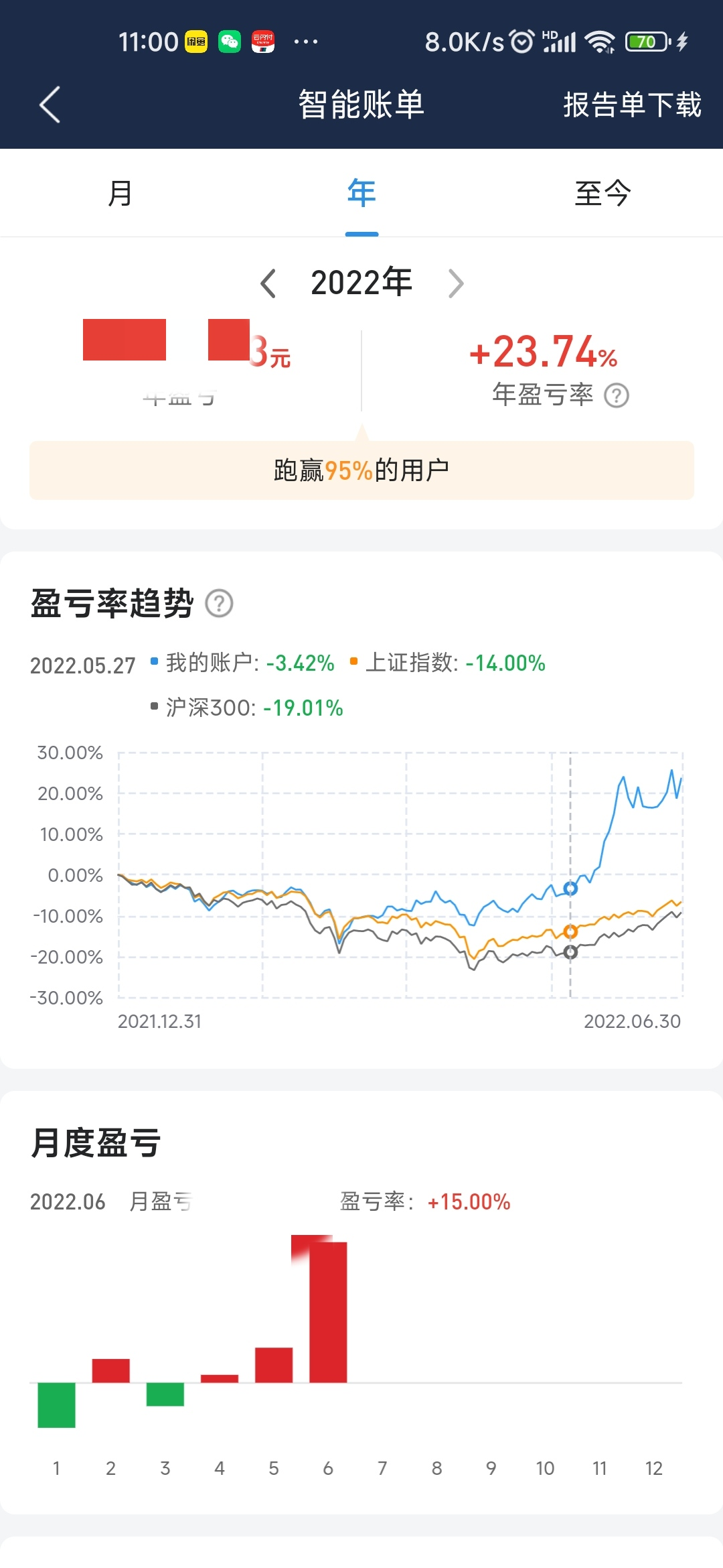 和去年差不多,半年收益22个点左右,本来今年降低收益预期的,能达到已经很满足了!