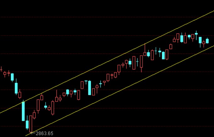 第二,说说我的系统节点条件:大盘近十来天的走势呈现出明显的量价背离特点,这个你是技术员,看图自己找吧。尤其是本周出现了我系统中的顶背离条件,所以我减了仓。那为什么还要贴这个图呢?是因为这个图(其实不是我画的,后面再说)跟我电脑上画的线比较接近,在这个通道上,出现背离减仓后再破了下轨是要将剩余的趋势仓清掉的。我今天尾盘清掉了(因为我没有盘后修改画线的习惯)。