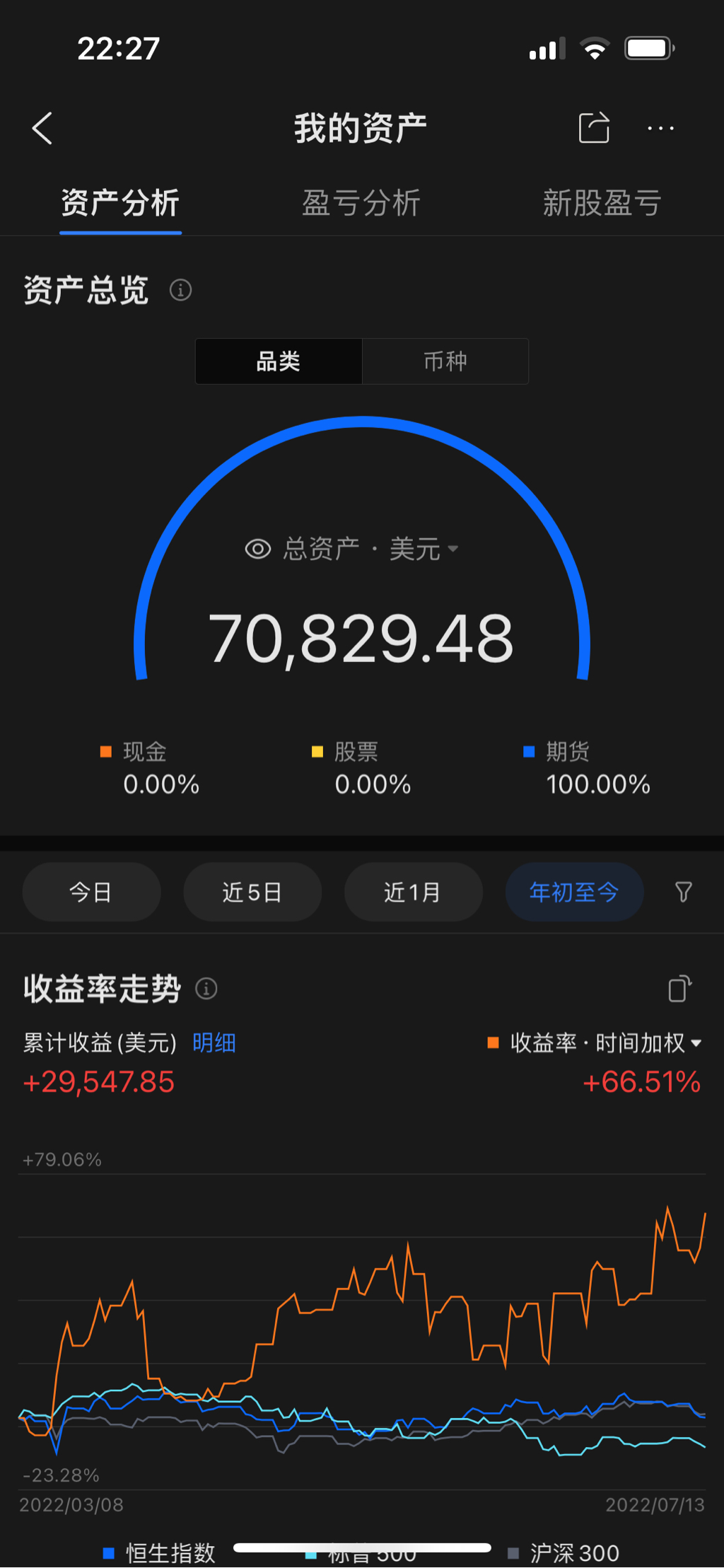 2017年试水港股,陆续踩雷中国华融,中国信达等几只票,到今年年初累计亏了40%。今年终于狠心清了港股,开始做富时A50股指期货,1个月就赚回来了亏损,并开始盈利了!你这用了很大的杠杆吧。。