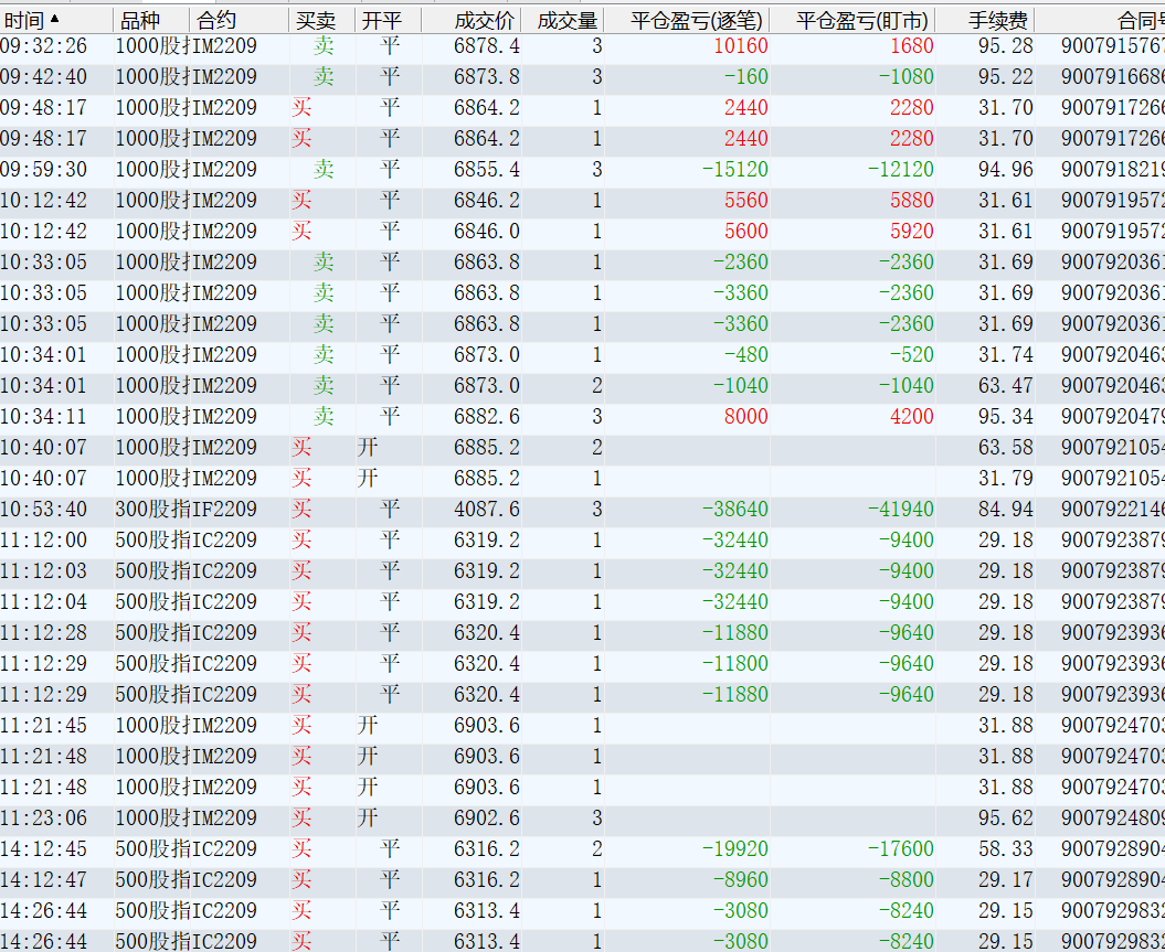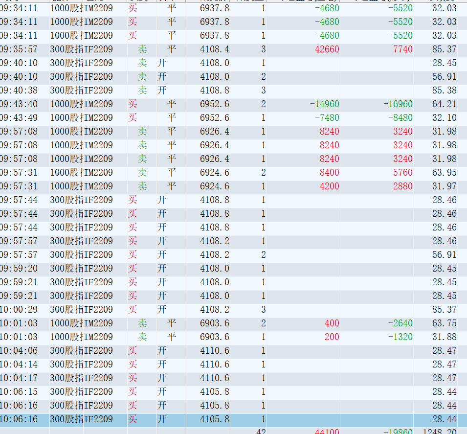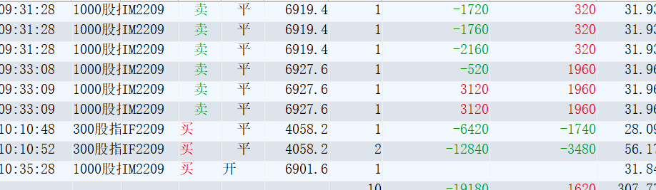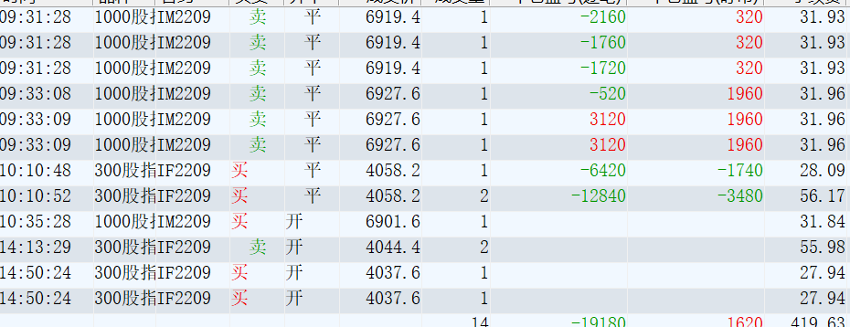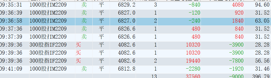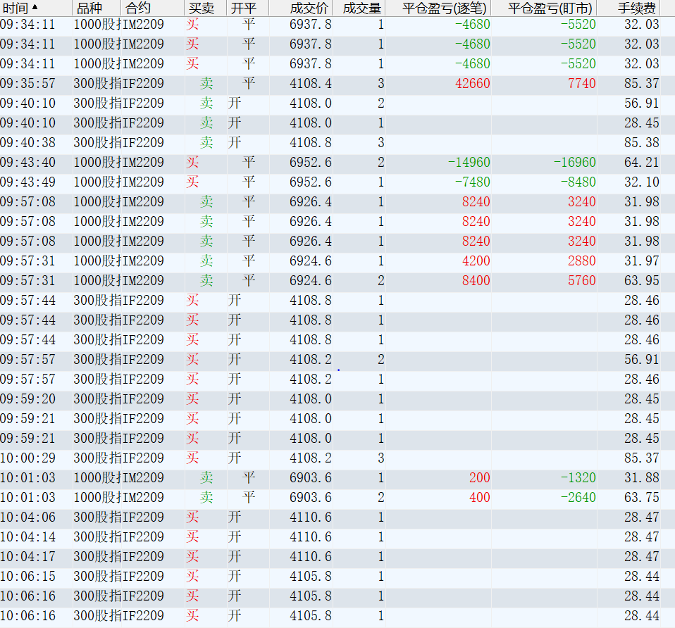 今天上午差点惨死早盘看着题材强权重弱就多1000空300眼见题材将衰运气非常好的再10点附近出了20张1000,加了20张300一下从多1000空300变成了多300空1000每天都是3.4000的手续费有点受不了