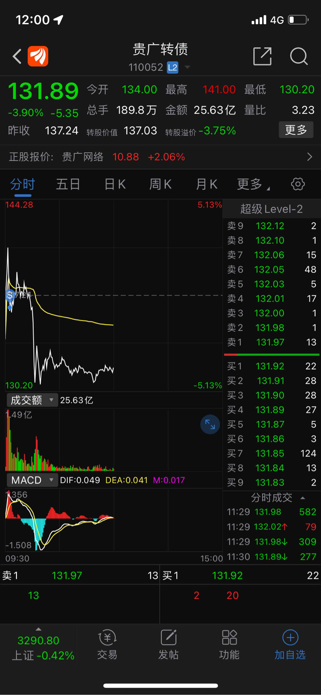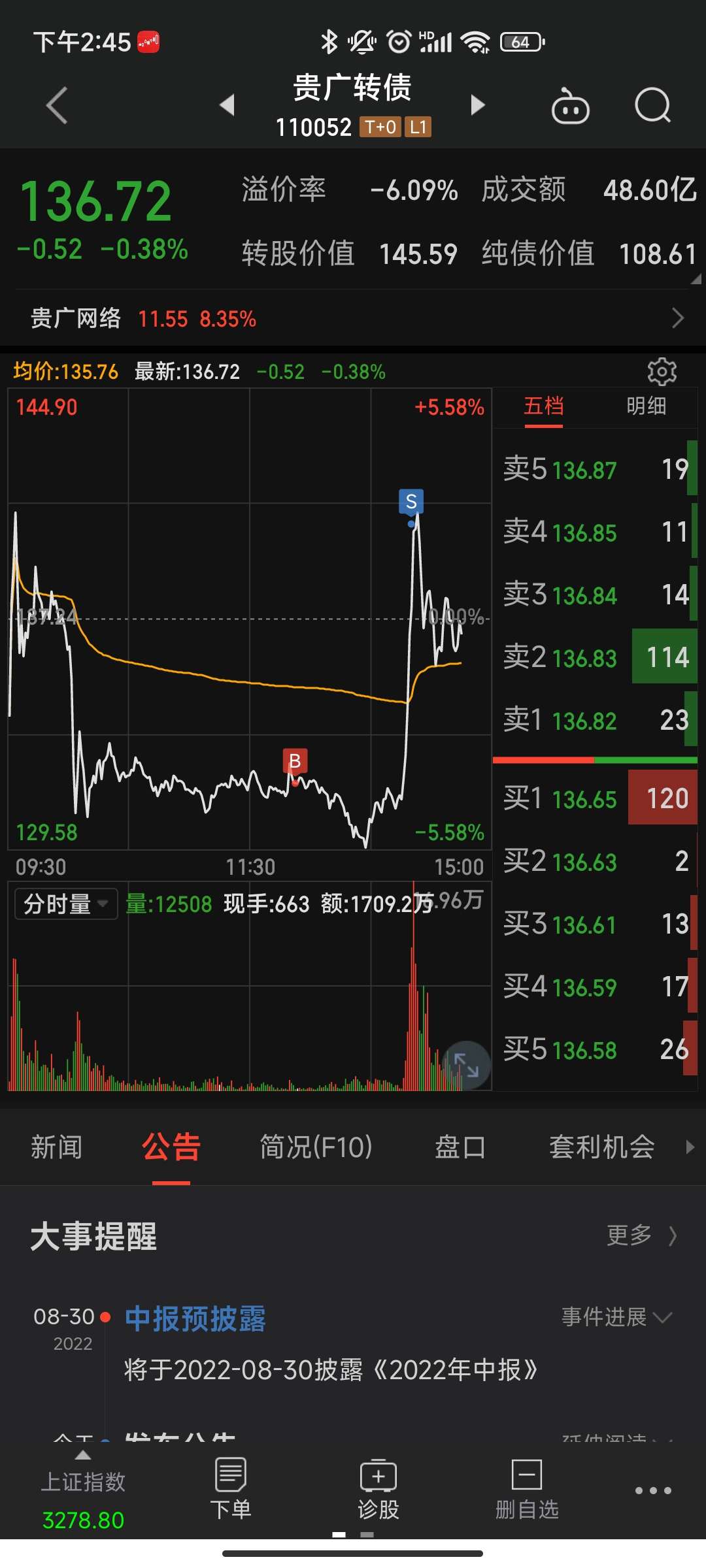 139附近已经出了大部分剩100张,下周一二能到120打算调至重仓,近期是贵广转股的好机会剩下的时间不多了,非常值得一搏