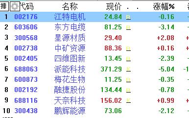 中矿资源、江特电机、星源材质、天奈科技、鹏辉能源、融捷股份都是锂电