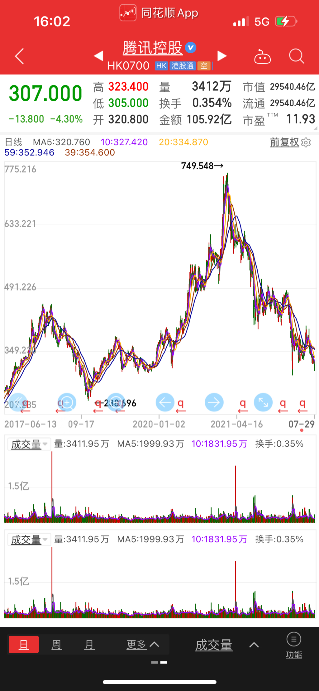 虽然不同行情 但是腾出和平安真的好像 当初平安也是大股东低位 我们散户认为的低位减持 再看平安后来走势 腾讯不敢买呀