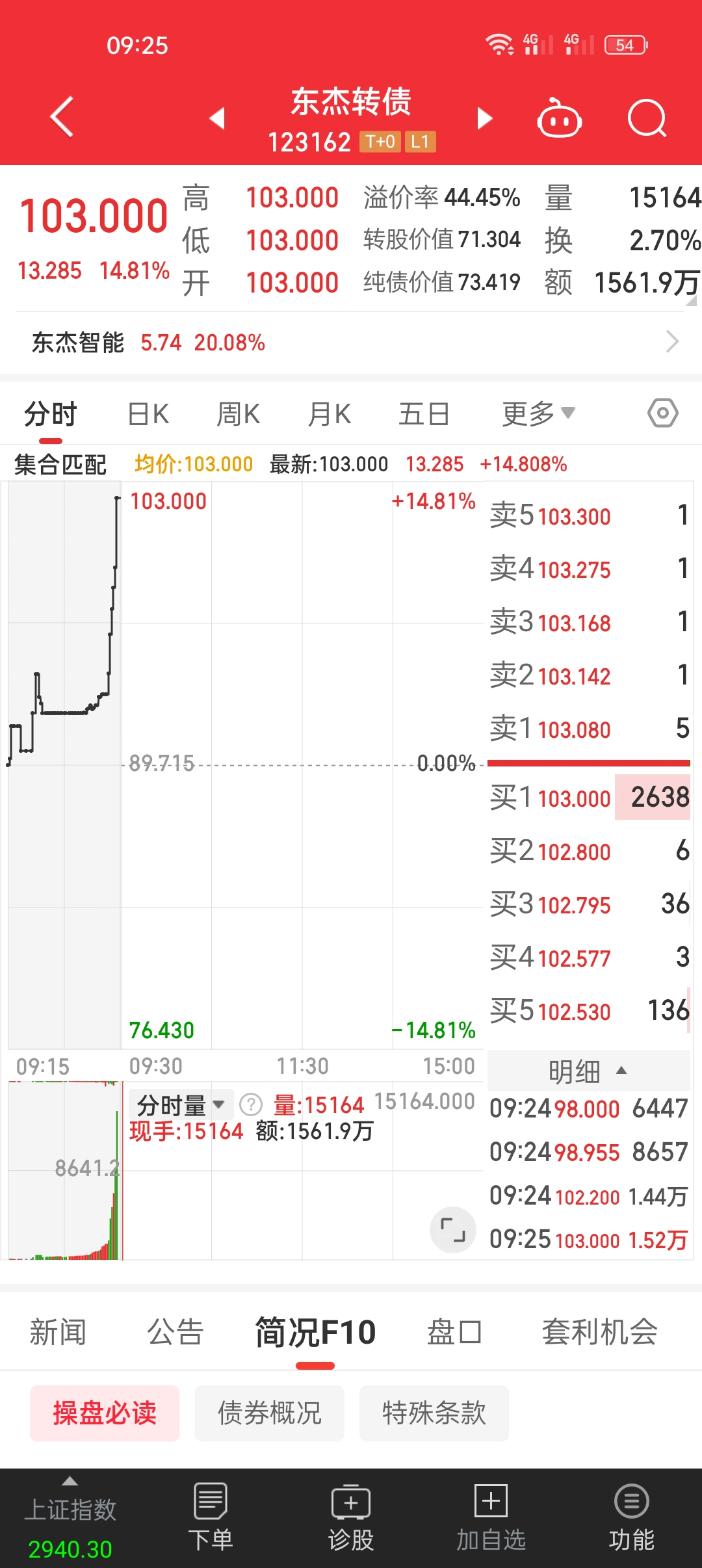 把酒etf的仓位换到东杰转债上了。买茅台和酒etf我的预期收益率是10%。买东杰转债预期收益率也是10%,两者承担的向下的波动也差不多。昨天就想换,有一些东西没想明白,今天想明白追高也换了。