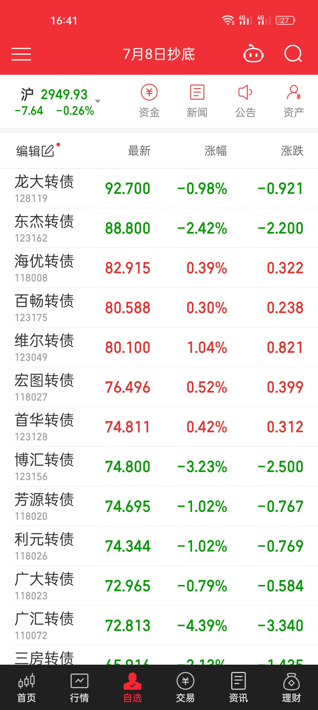 接着清仓转债。总会给倒车接人的机会。海优今年的评级还没出。下修大会7月12日开。会给更好的上车机会。恰逢茅台跌了,今天买了回来,然后昨天买的海优赚了点,其他三个接近保本。一来一回未来增加了1.5%的收益。
