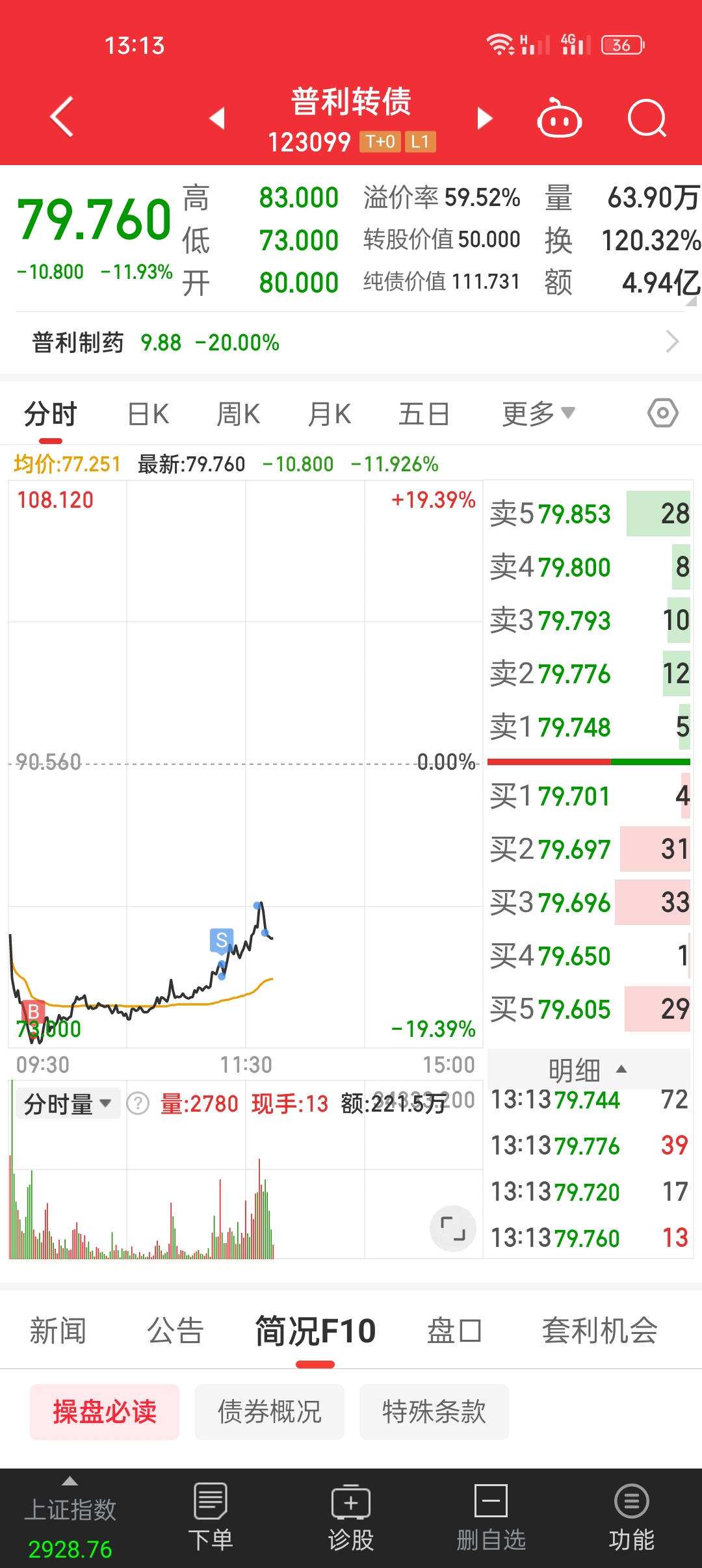 现在转债买盘力量太弱了。海优,城地下修不达预期,博下修的资金稍微一砸就出一个坑。博汇还没出评级报告,我要是庄,想操盘这个债,我就利用评级报告的利空砸盘吸筹,这样想来我要承担的向下的波动就大了。之前拉到78没卖,现在表示非常后悔。今天开盘后必须要有减仓动作。