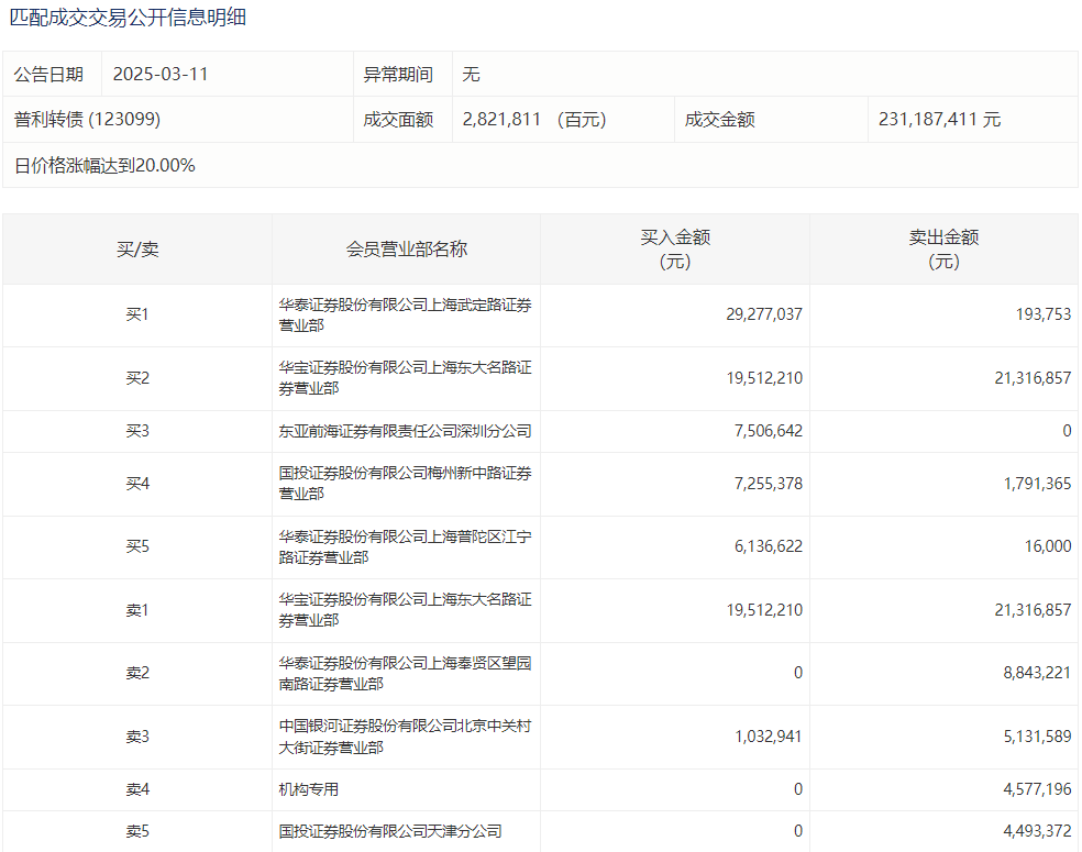 2025年7月21日,上交所可转债龙虎榜有1支转债,深交所可转债龙虎榜有1支转债。