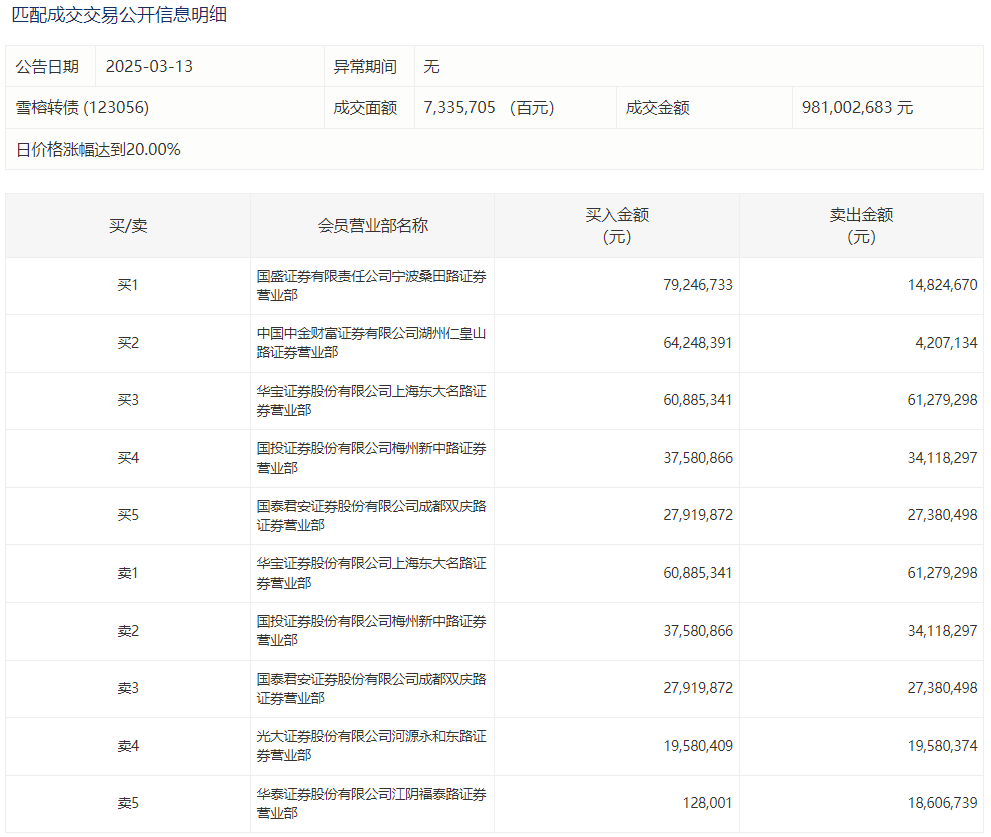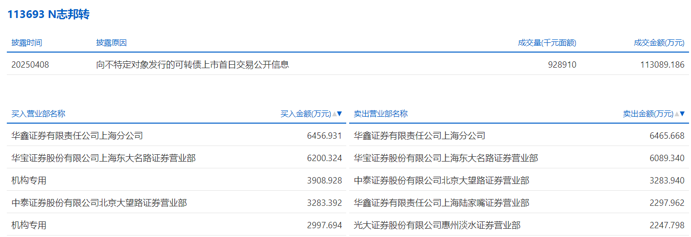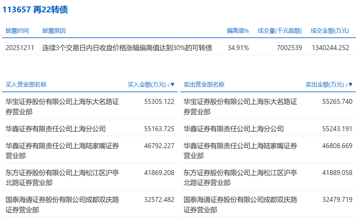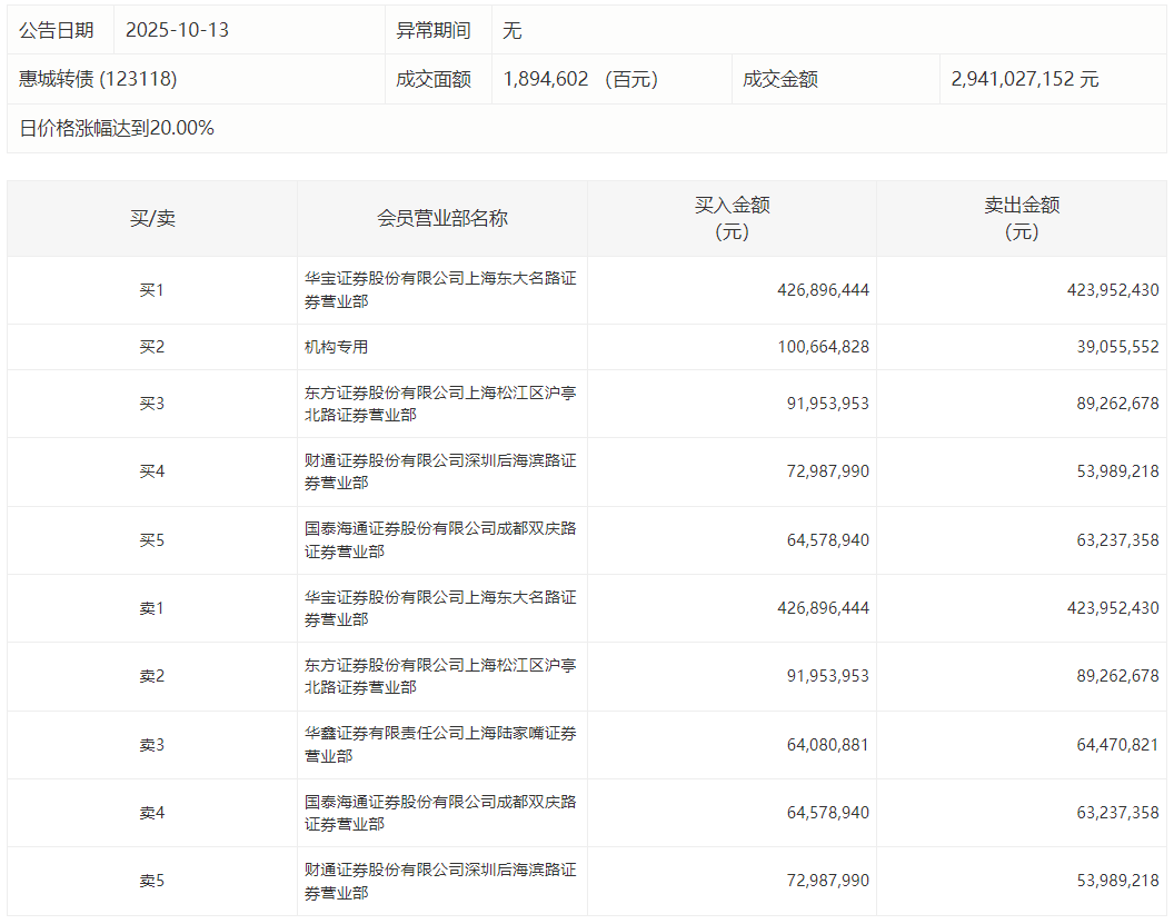 2025年10月13日,上交所可转债龙虎榜有1支转债,深交所可转债龙虎榜有1支转债。