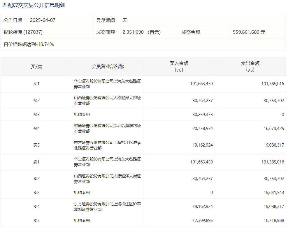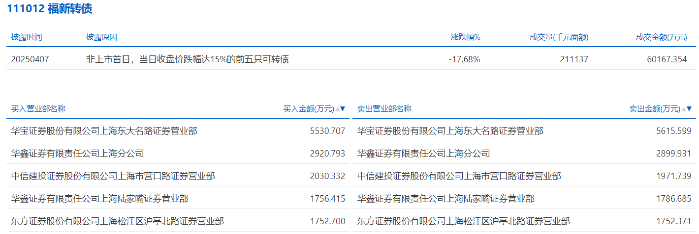 2025年4月30日,上交所可转债龙虎榜有1支转债,深交所可转债龙虎榜有1支转债。