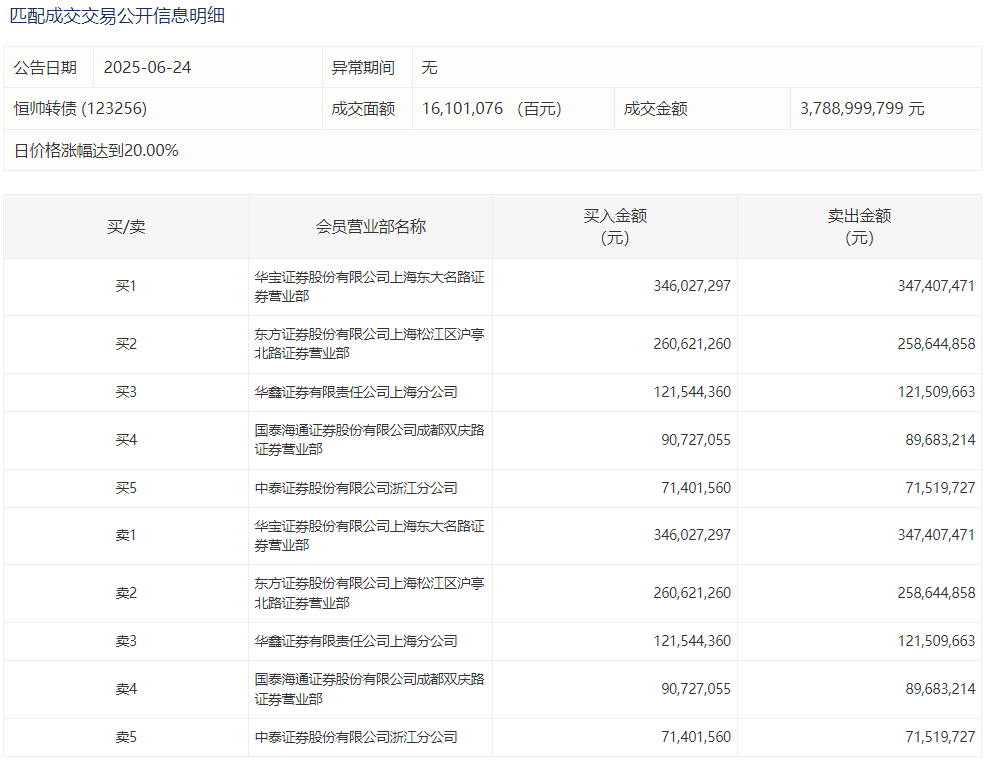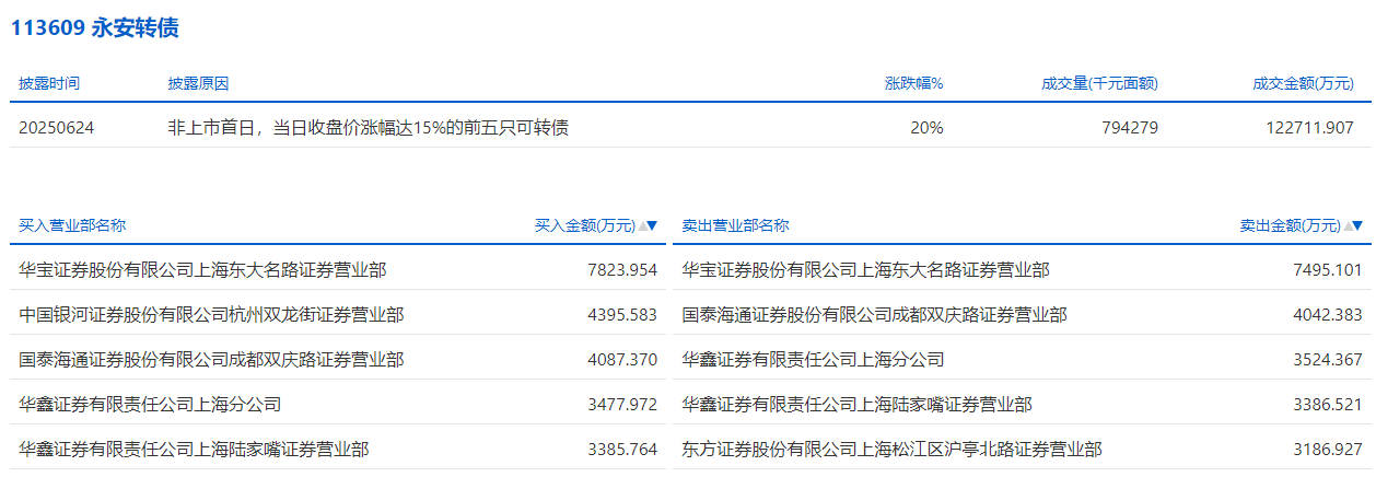 2025年6月24日,上交所可转债龙虎榜有1支转债,深交所可转债龙虎榜有1支转债。