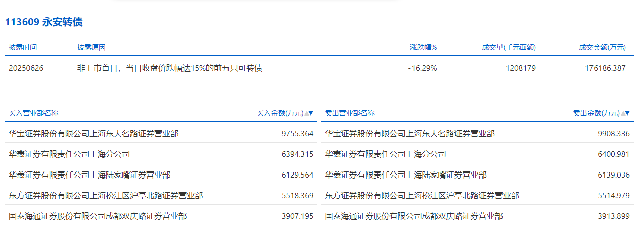 2025年6月16日,深交所可转债龙虎榜有1支转债。