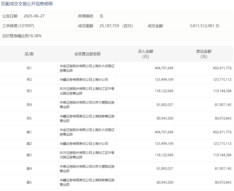 2025年6月18日,深交所可转债龙虎榜有1支转债。