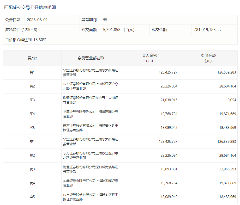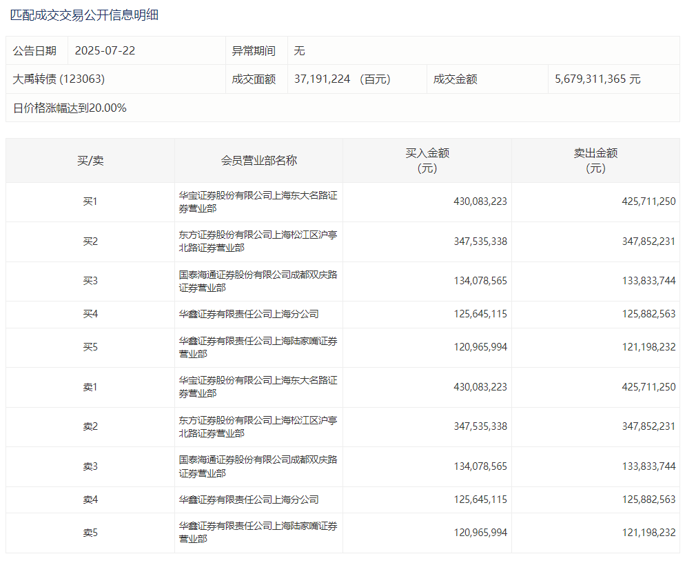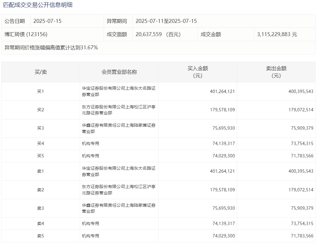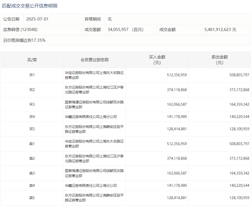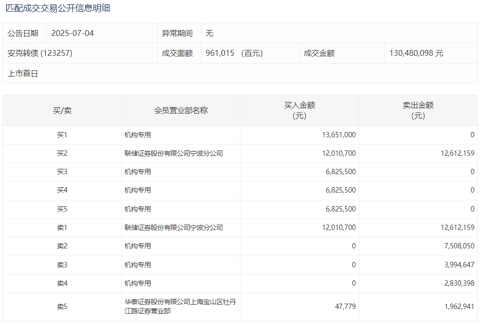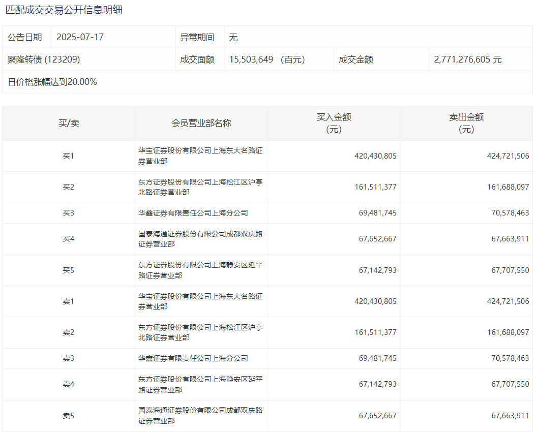 2025年7月15日,上交所可转债龙虎榜有1支转债,深交所可转债龙虎榜有1支转债。