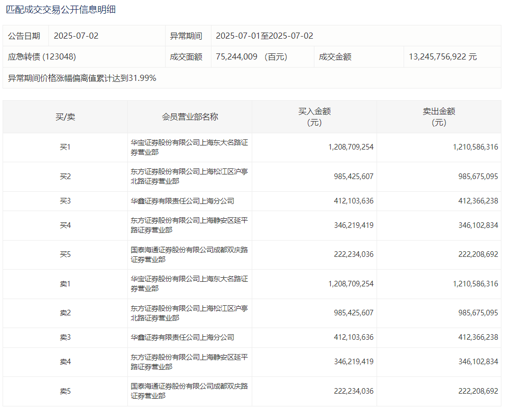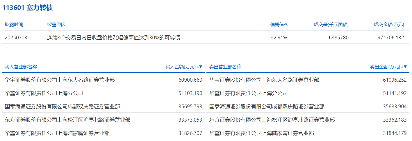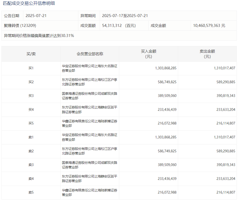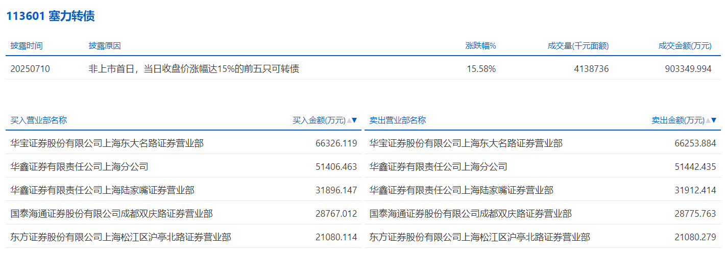 2025年7月10日,上交所可转债龙虎榜有3支转债。