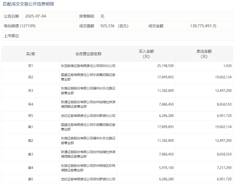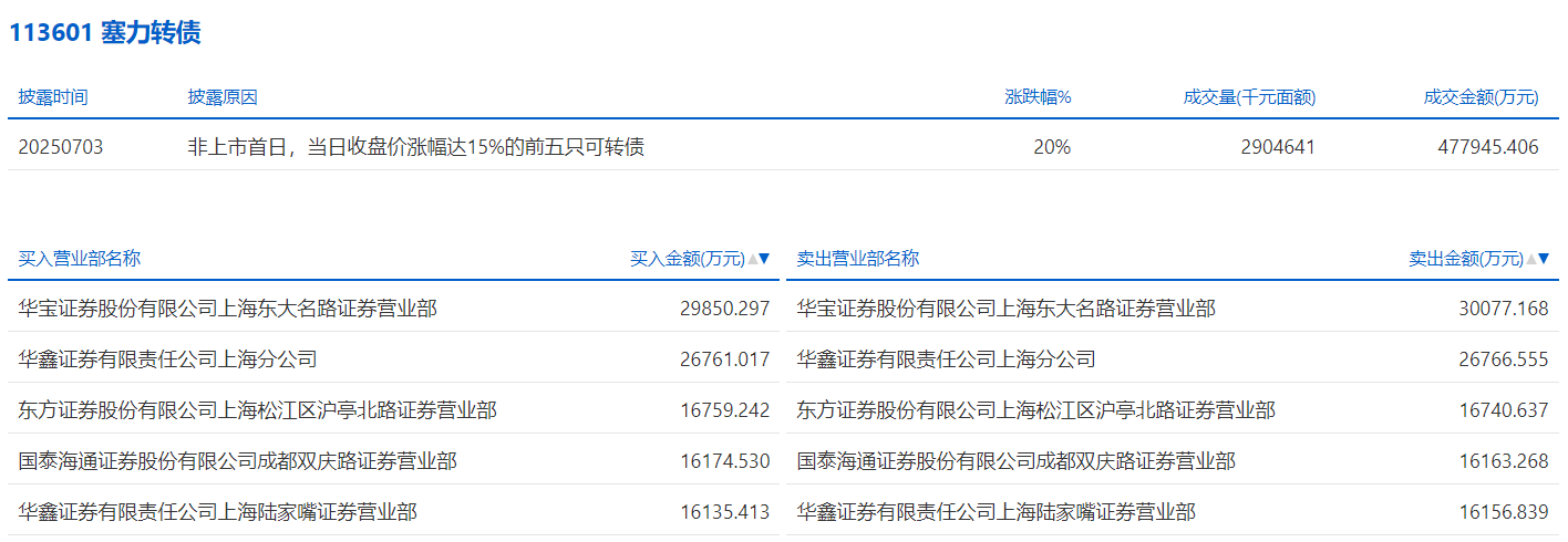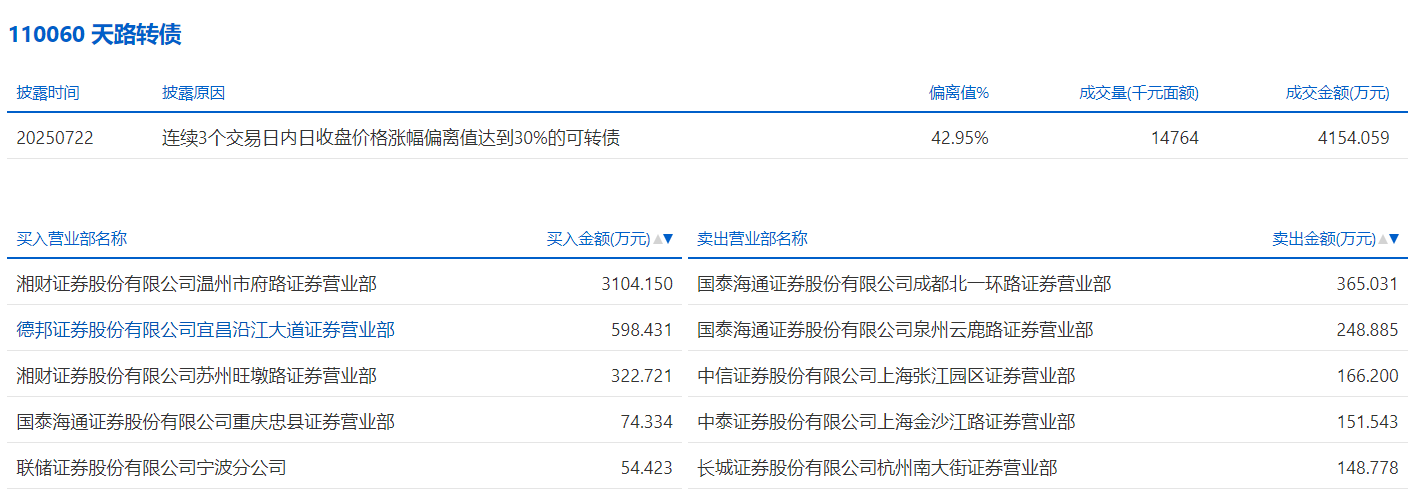 2025年7月4日,深交所可转债龙虎榜有2支转债。