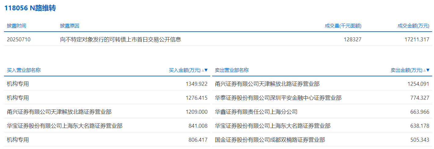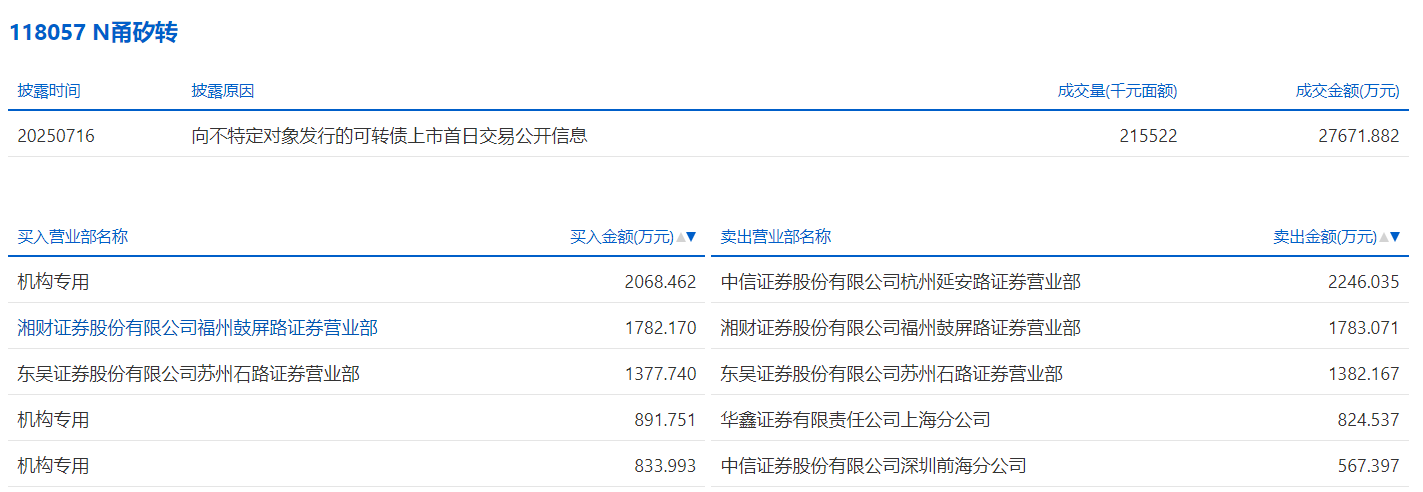 2025年7月16日,上交所可转债龙虎榜有1支转债。