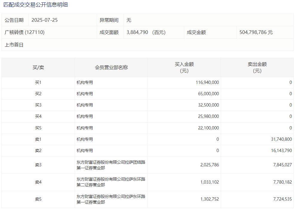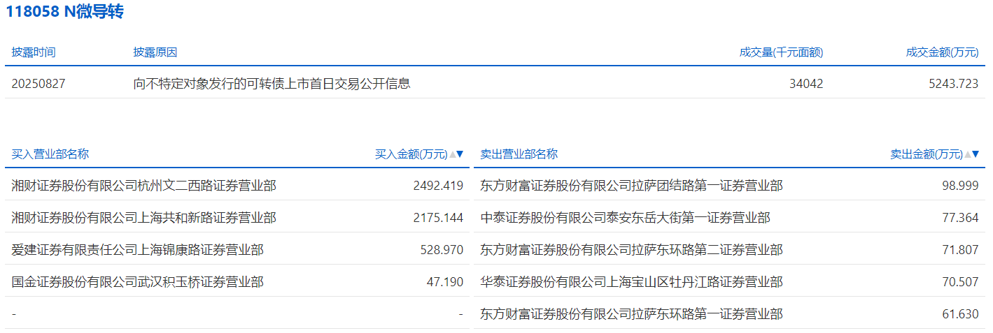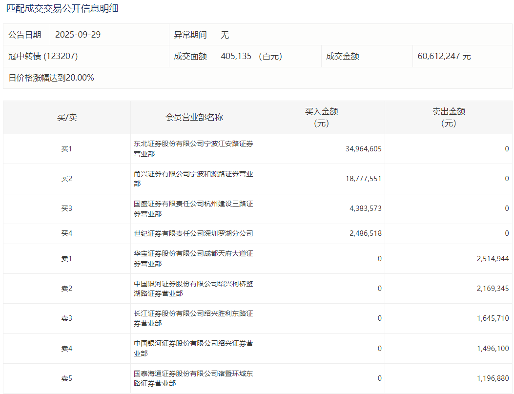 2025年6月5日,深交所可转债龙虎榜有1支转债。