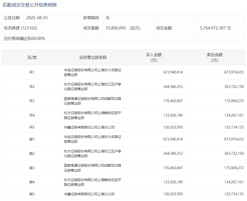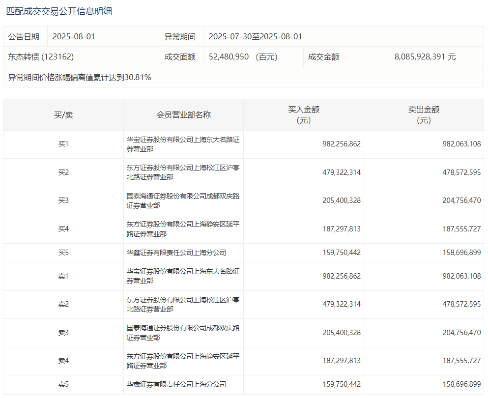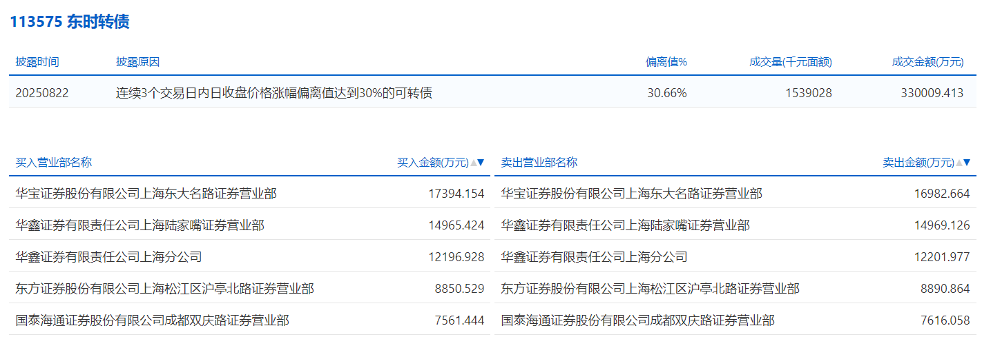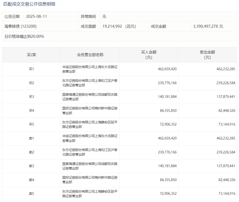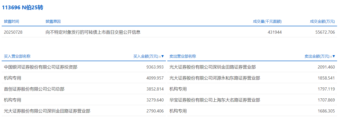 2025年8月11日,上交所可转债龙虎榜有1支转债,深交所可转债龙虎榜有2支转债。