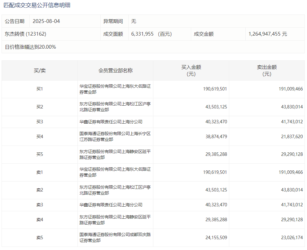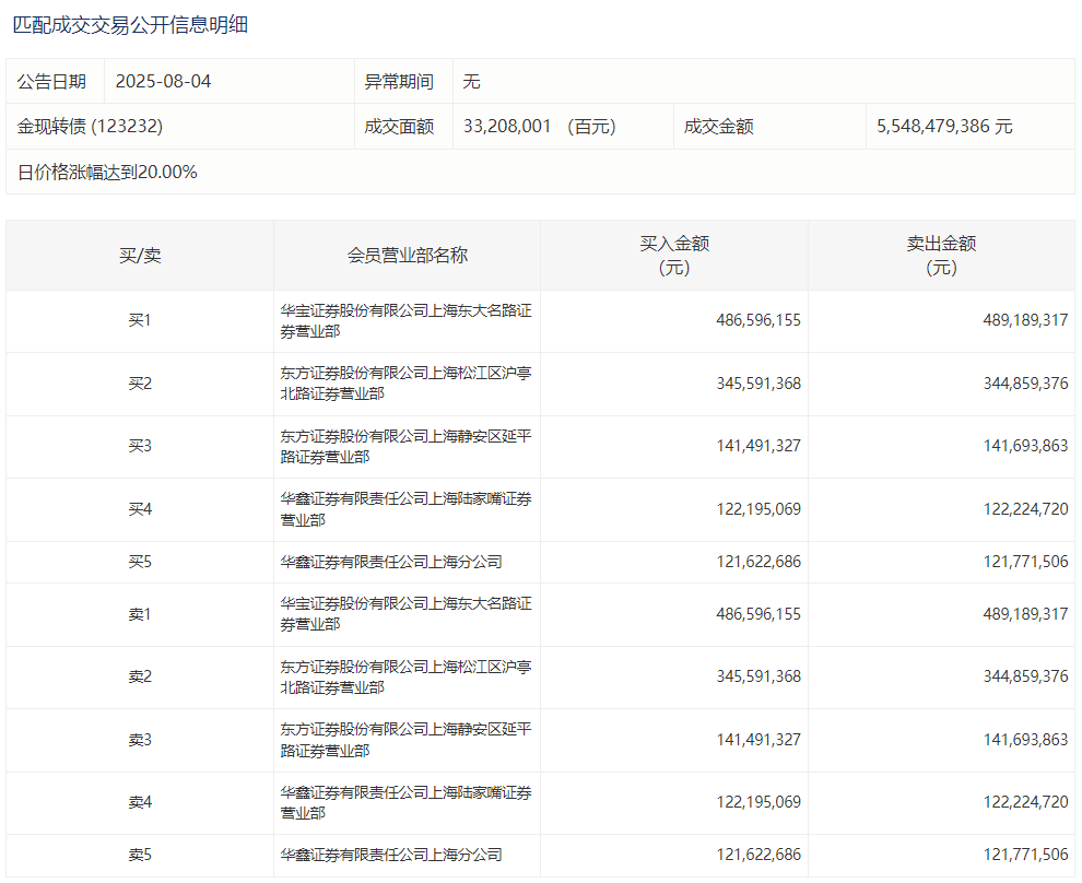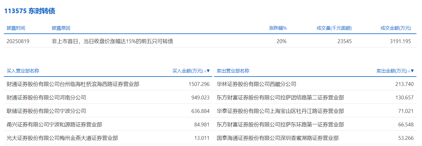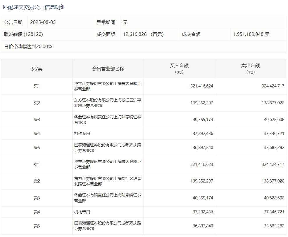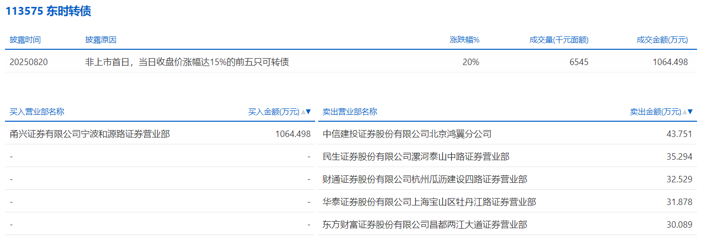 2025年8月20日,上交所可转债龙虎榜有1支转债。