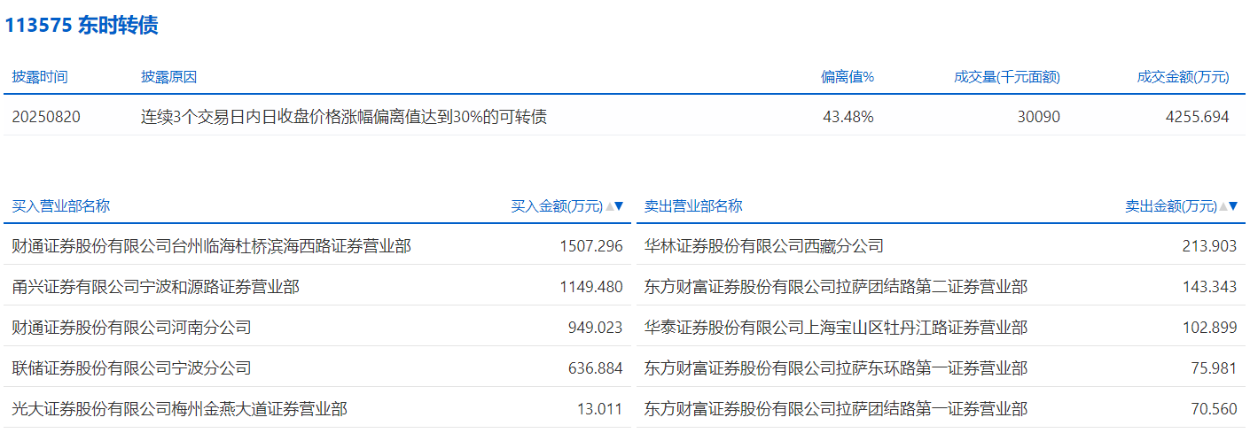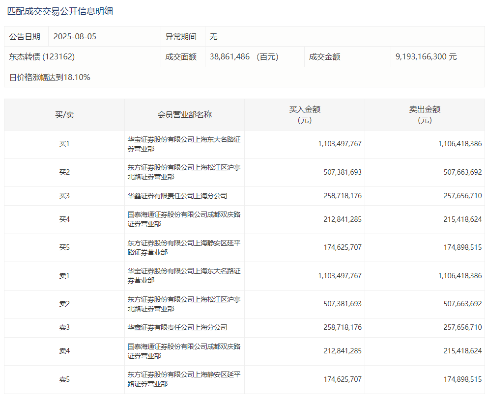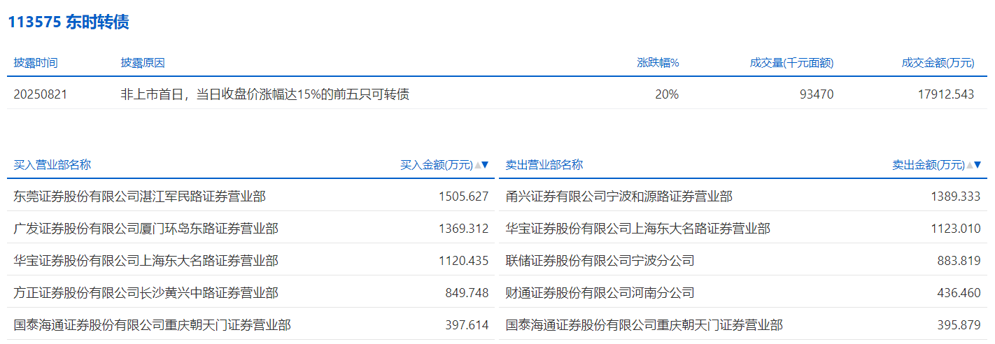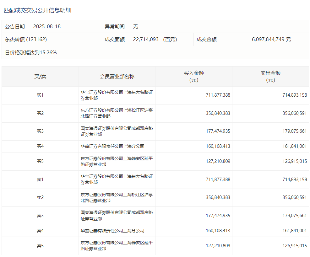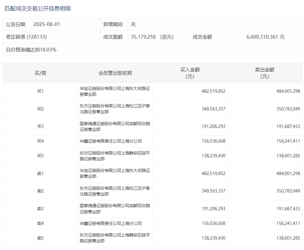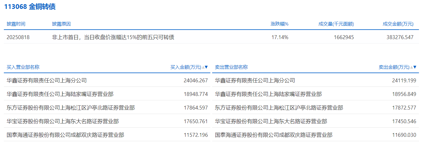 2025年8月18日,上交所可转债龙虎榜有1支转债,深交所可转债龙虎榜有1支转债。