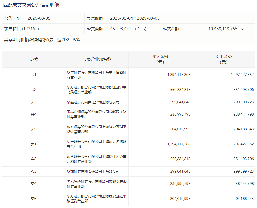 2025年4月10日,上交所可转债龙虎榜有1支转债,深交所可转债龙虎榜有1支转债。