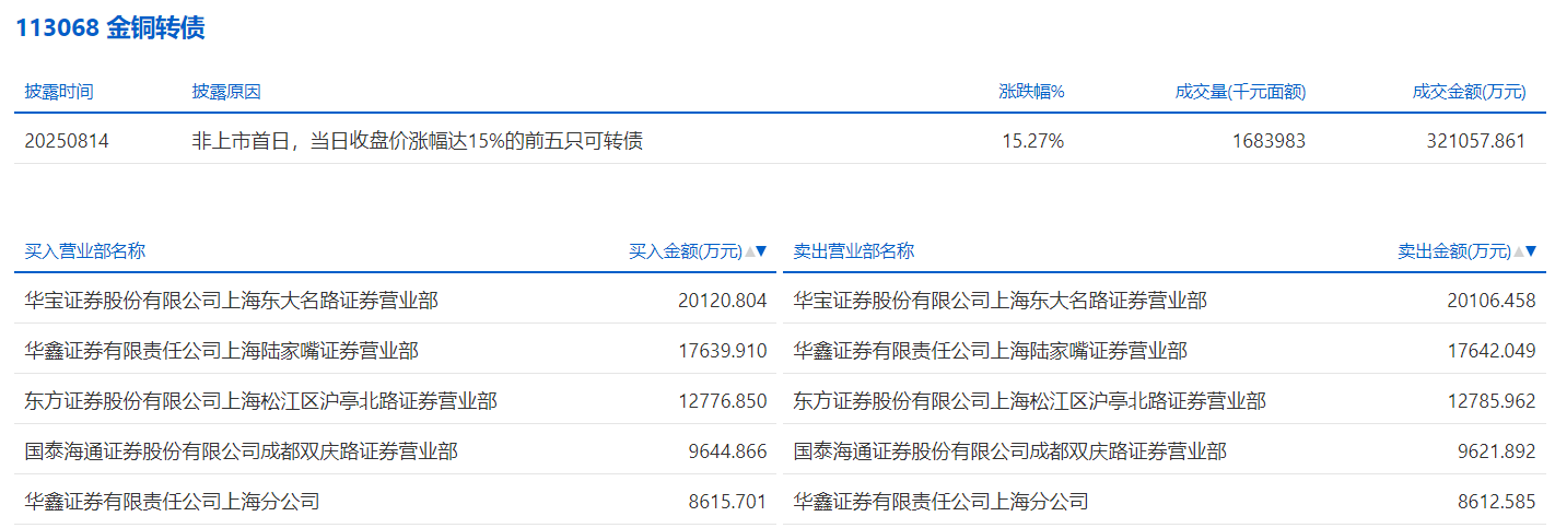 2025年8月14日,上交所可转债龙虎榜有1支转债。
