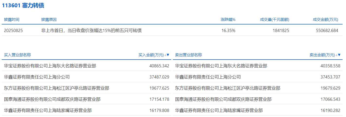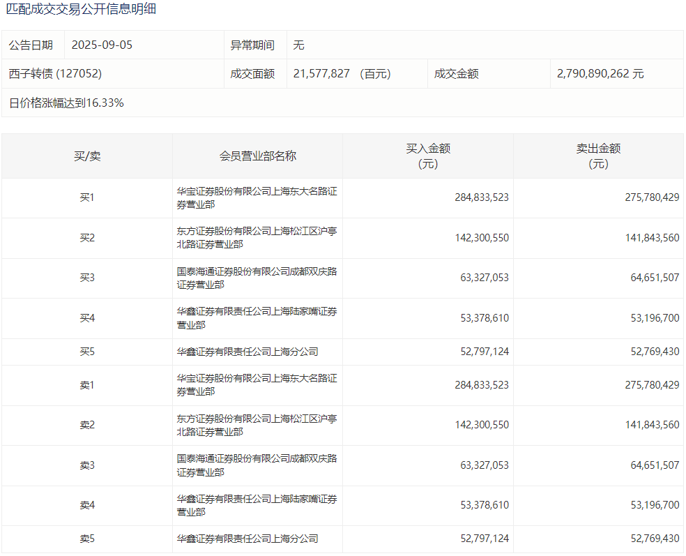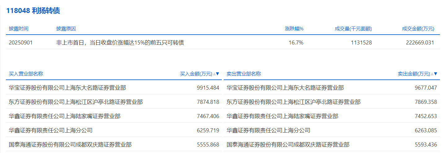 2025年9月5日,深交所可转债龙虎榜有1支转债。