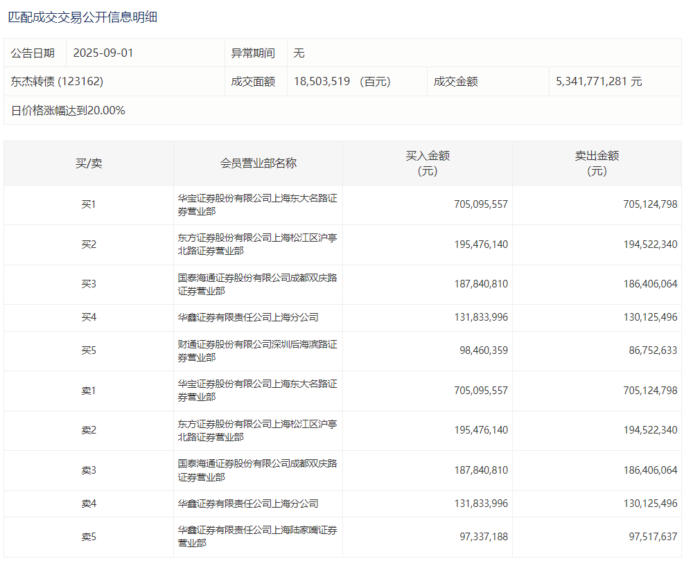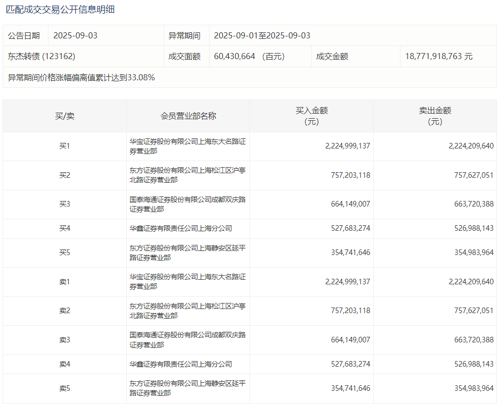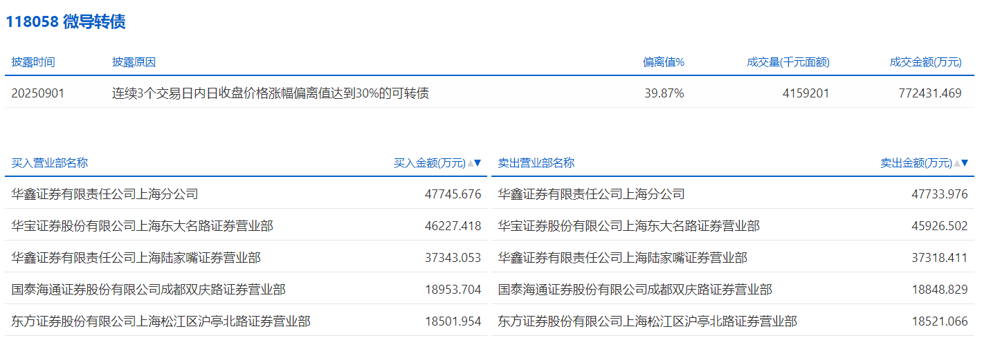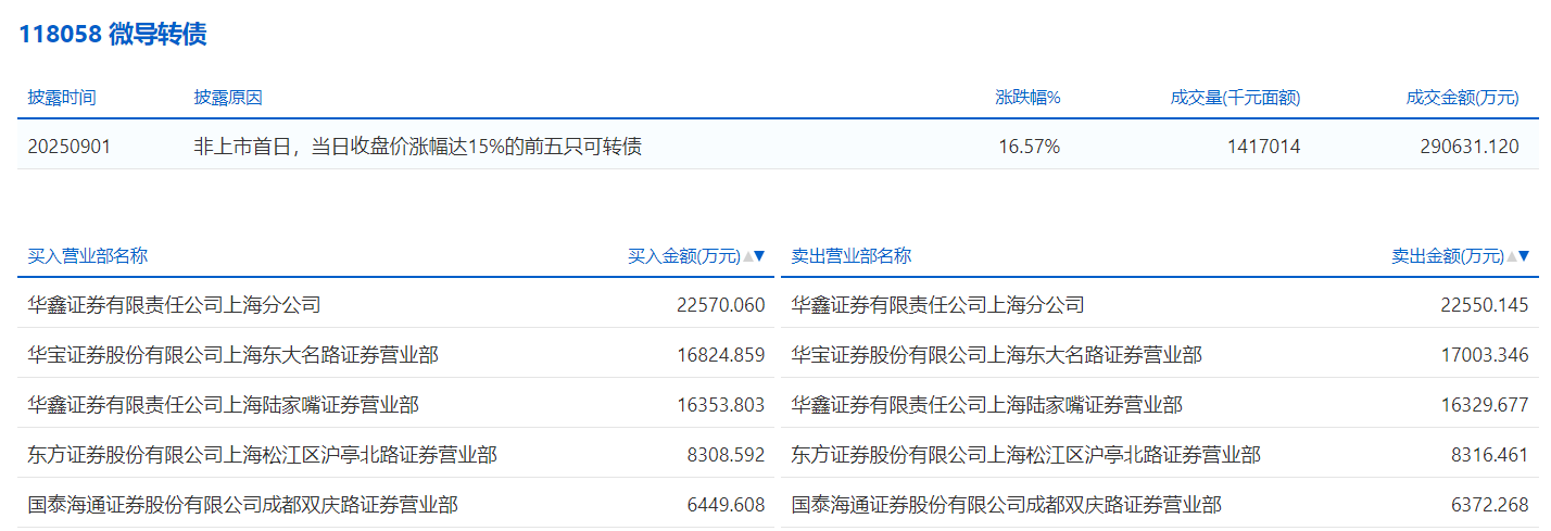 2025年9月1日,上交所可转债龙虎榜有2支转债,深交所可转债龙虎榜有2支转债。