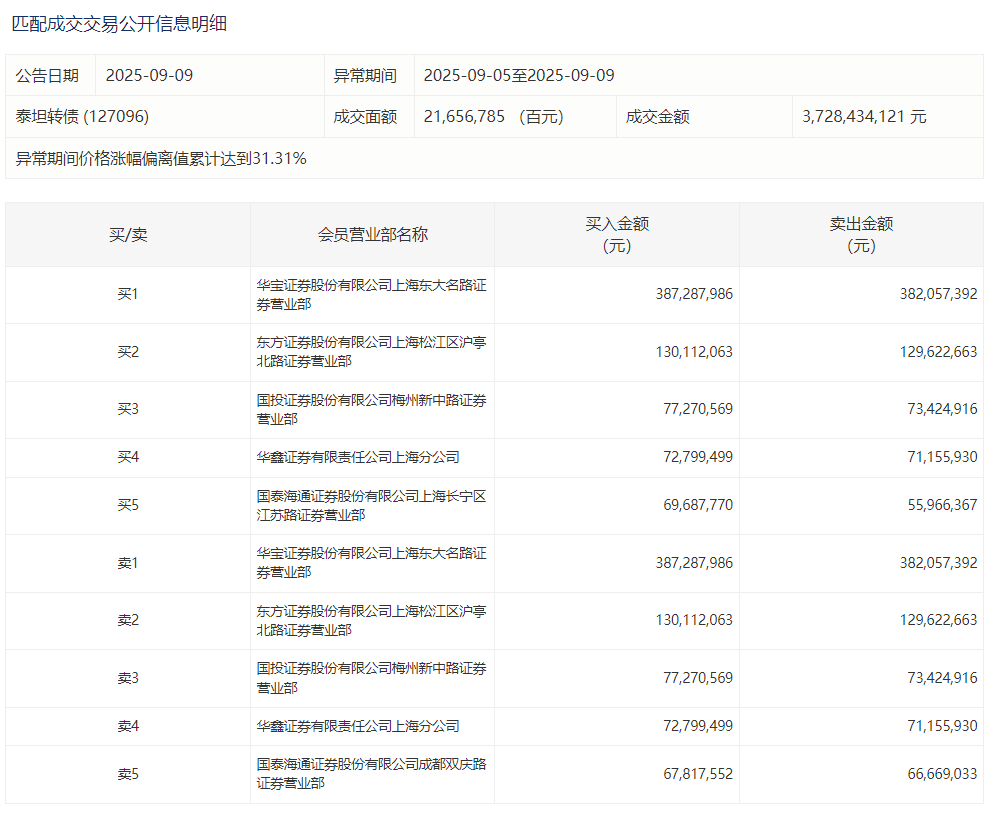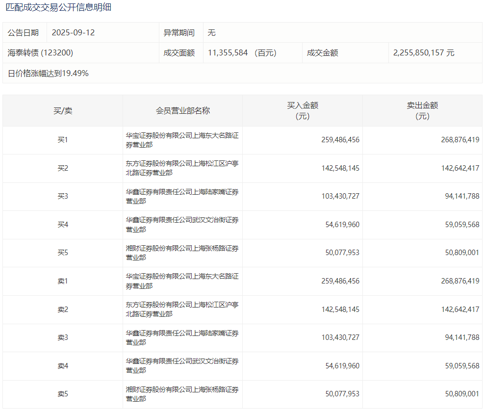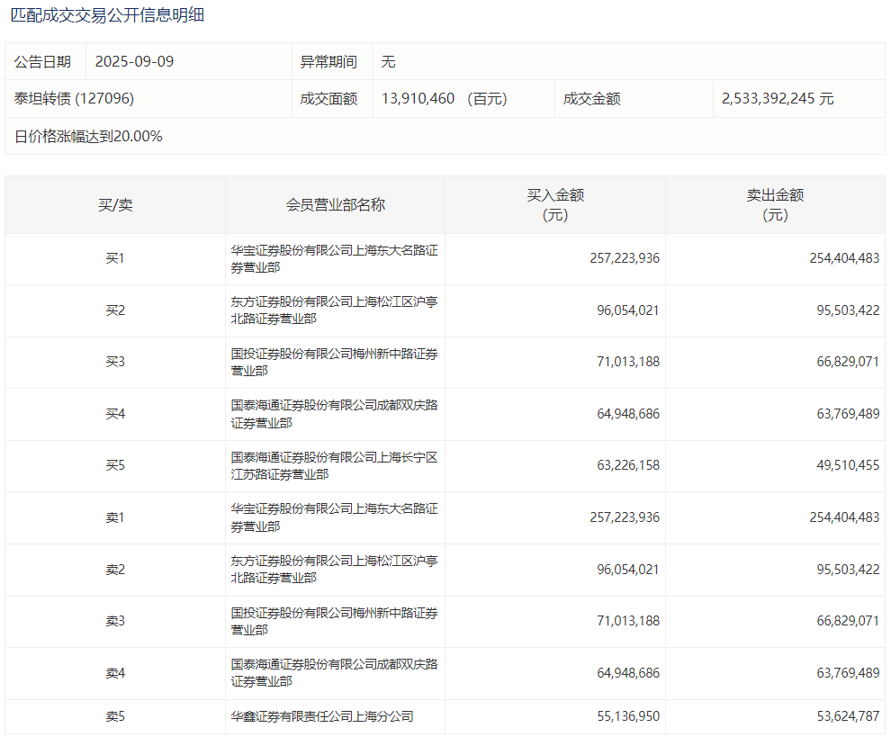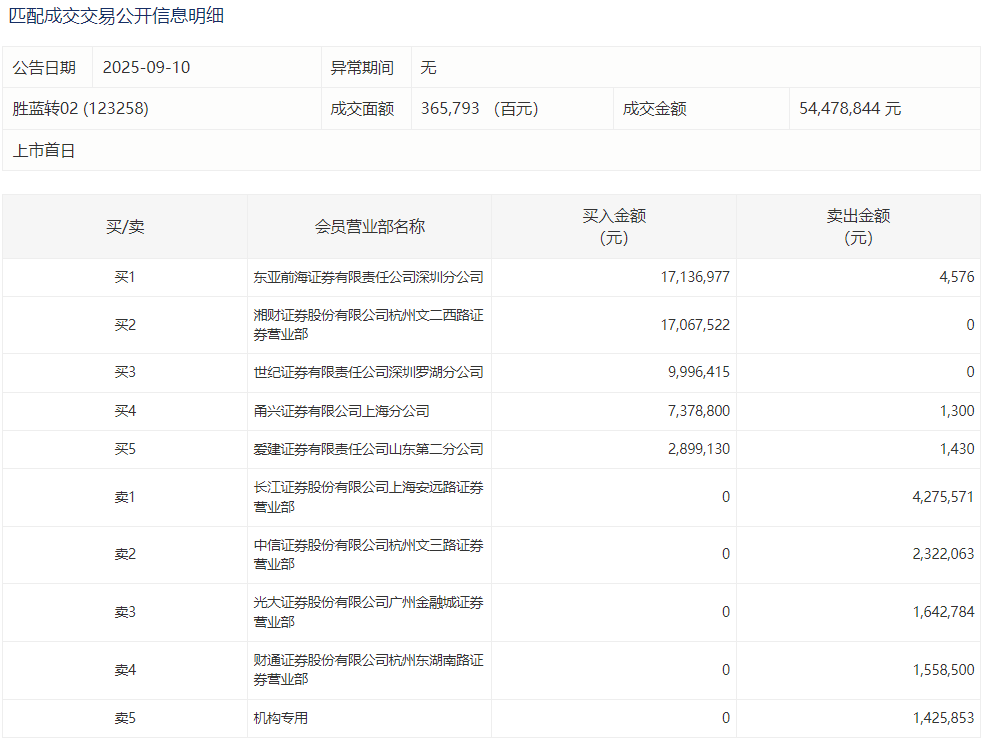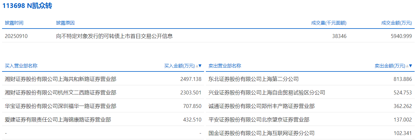 2025年9月10日,上交所可转债龙虎榜有1支转债,深交所可转债龙虎榜有1支转债。