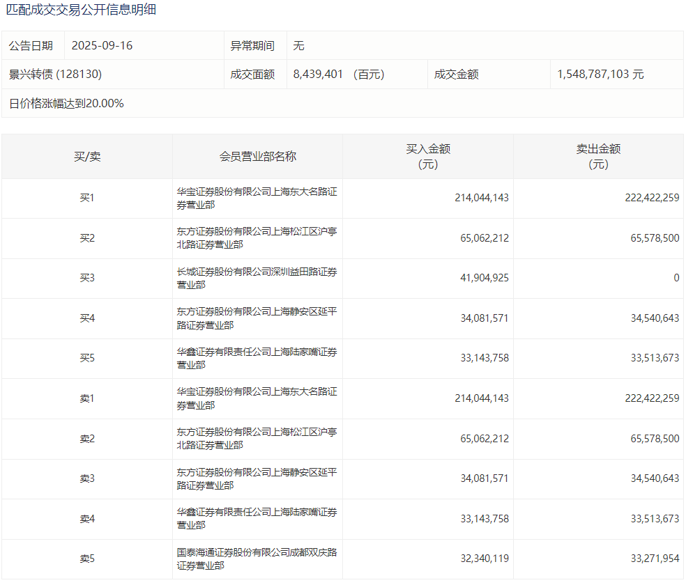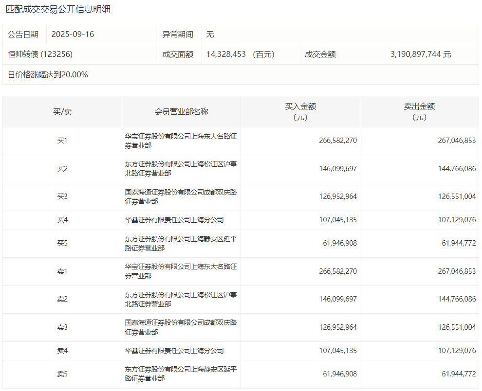 2025年9月16日,深交所可转债龙虎榜有2支转债。