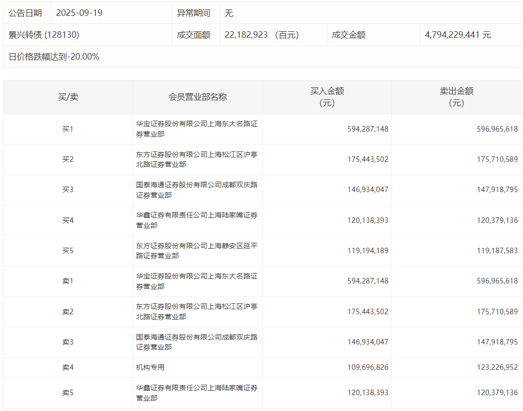2025年9月19日,深交所可转债龙虎榜有1支转债。
