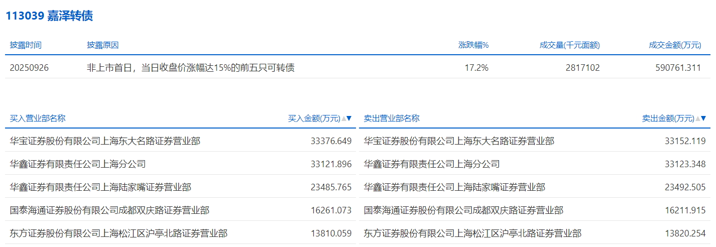 2025年9月26日,上交所可转债龙虎榜有1支转债。