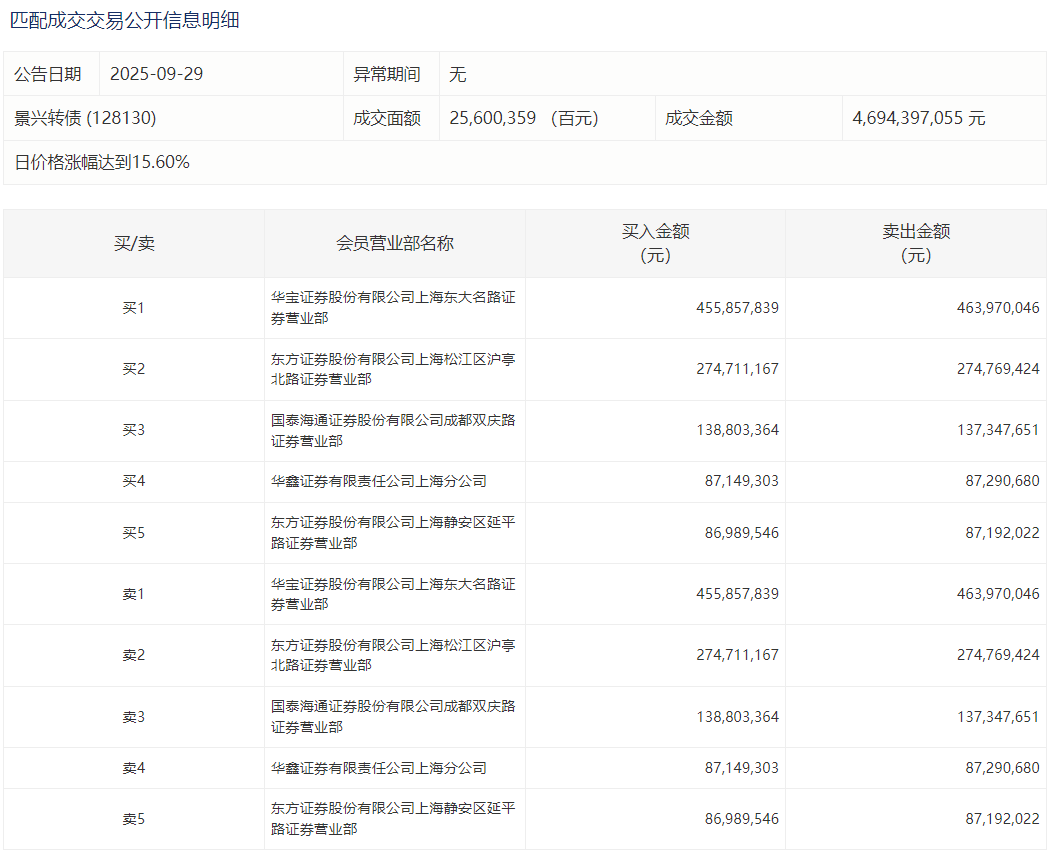 2025年9月29日,上交所可转债龙虎榜有1支转债,深交所可转债龙虎榜有2支转债。