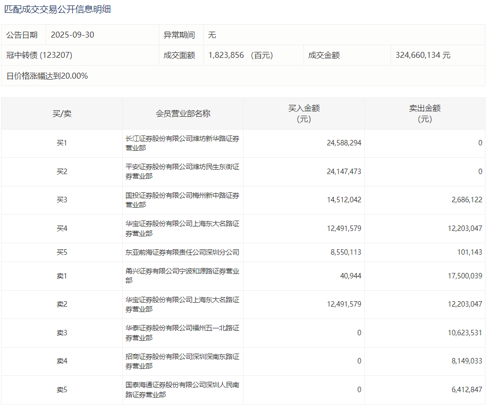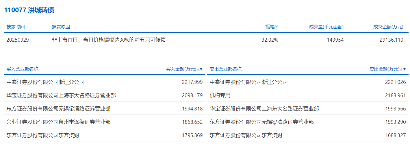 2025年9月30日,深交所可转债龙虎榜有1支转债。