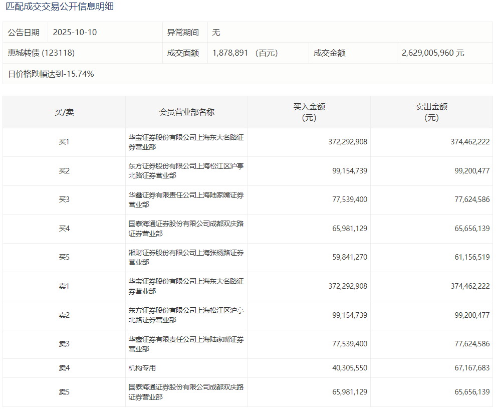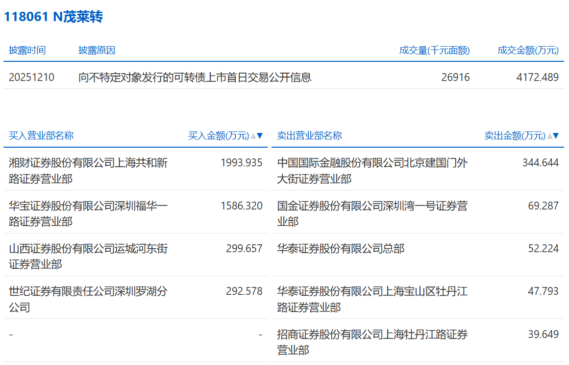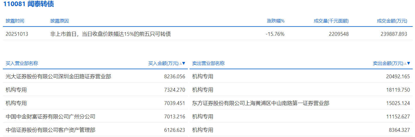 2025年10月10日,深交所可转债龙虎榜有2支转债。