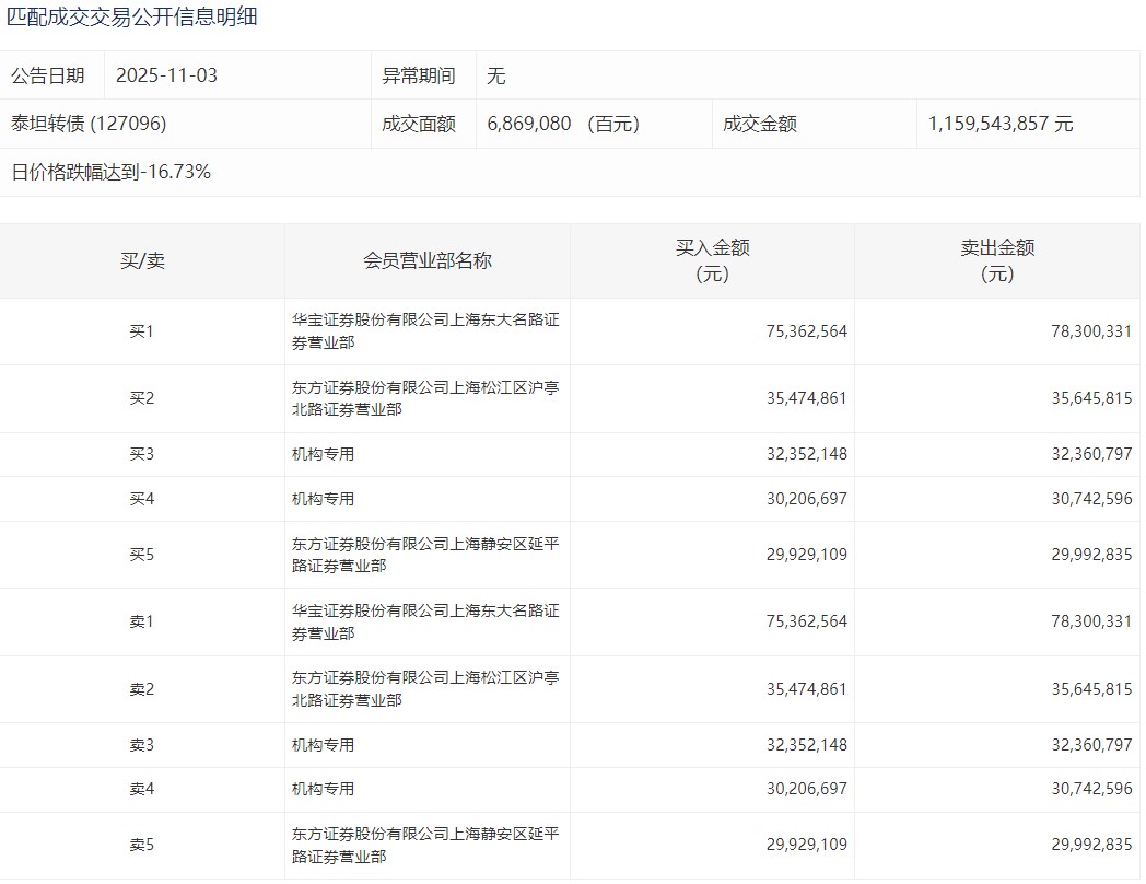 2025年11月3日,深交所可转债龙虎榜有1支转债。